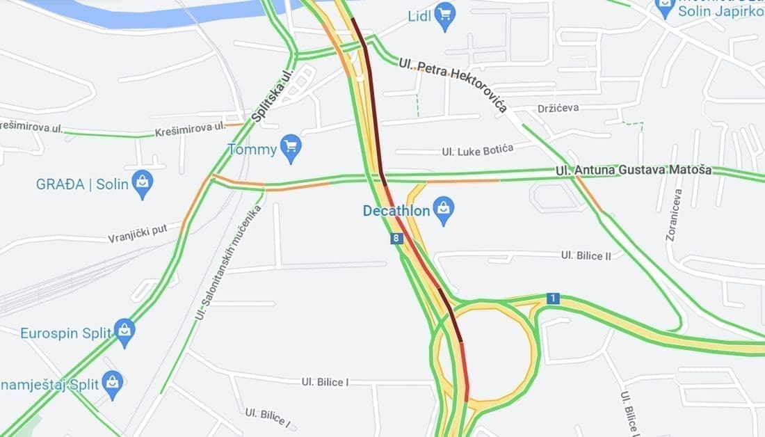 Ogromna gužva nastala je na državnoj cesti D8 iz smjera Splita prema Solinu. Kako smo doznali od čitateljice, dogodila se prometna nesreće u blizini trgovačkog centra Salona Malla.