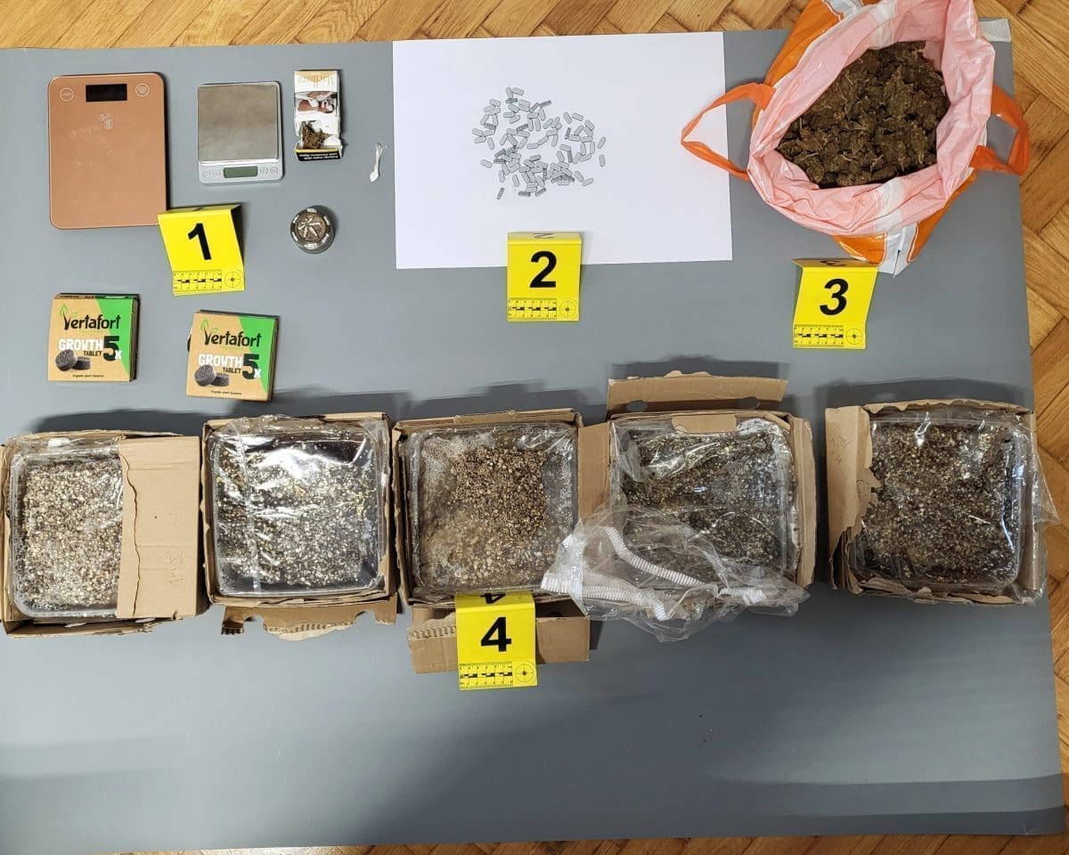 Tom prilikom je od njega oduzeto 506 grama droge marihuane, 90 tableta droge ecstasy, 0,46 grama droge speed, 5,9 kilograma halucinogenih gljiva, osam komada organskih tableta za rast biljaka, te aparat za usitnjavanje bilja-mrvilica i dvije vage za precizno mjerenje.