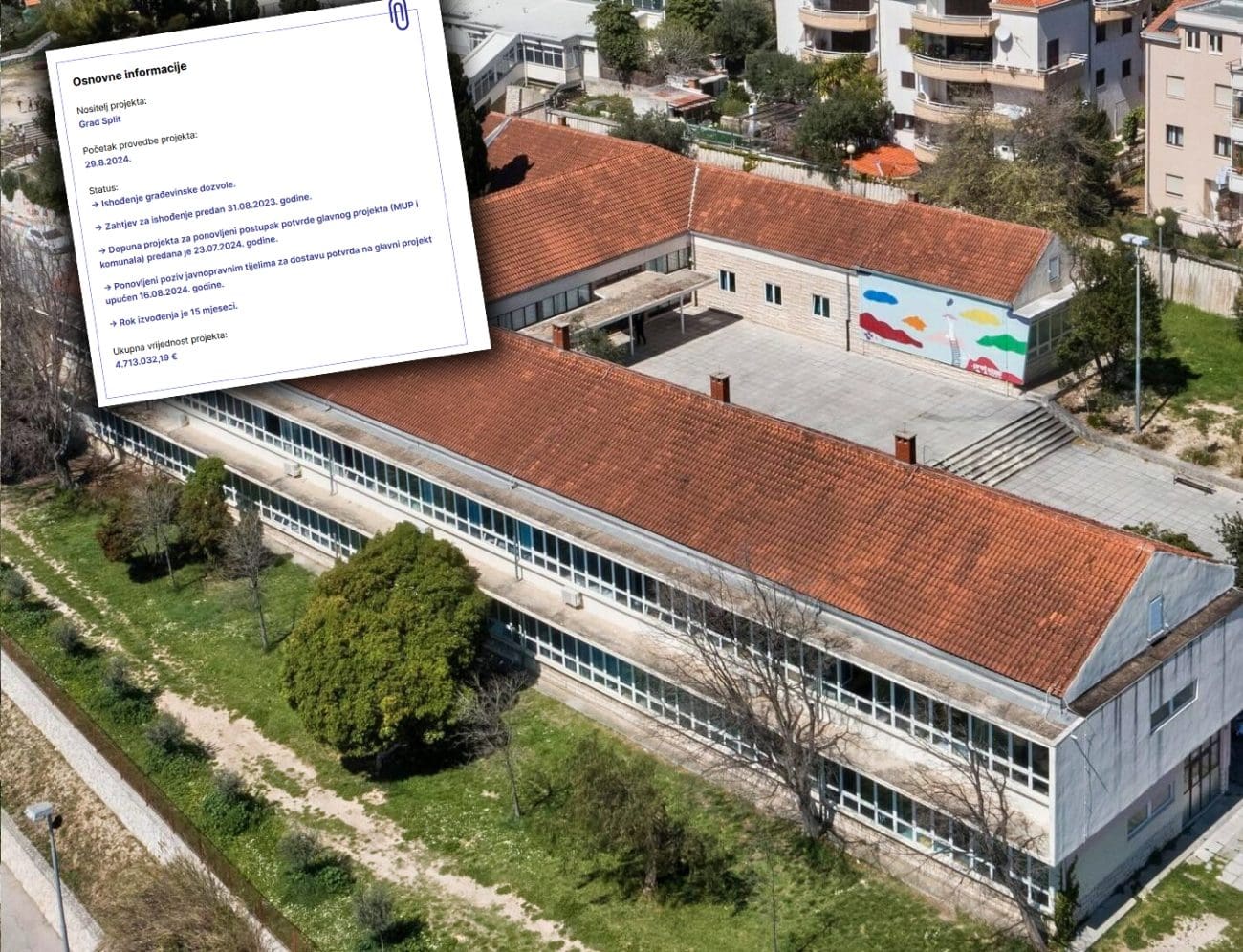 Podsjetimo, nova gradska vlast na čelu s gradonačelnikom Tomislavom Šutom objavila da je Grad Split donio službenu odluku o poništenju otvorenog postupka javne nabave za izvođenje radova na sanaciji i rekonstrukciji krovišta, energetskoj obnovi, uređenju igrališta te izgradnji podzemne garaže na Osnovnoj školi Meje. Kako smo ranije pisali, a sada je postalo i službeno, odluka je formalizirana 30. lipnja 2025. godine. Dodajmo i da je cijeli projekt proveden tijekom prošlog mandata, a najvažnije primjedbe i sastanke roditelji su tada upućivali bivšoj gradskoj vlasti na čelu s Ivicom Puljkom te tadašnjoj gradskoj administraciji, kao i svim dionicima koji su sudjelovali u projektu za Osnovnu školu Meje.