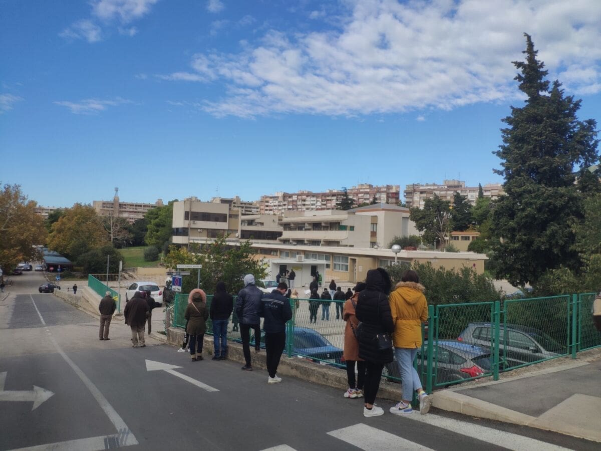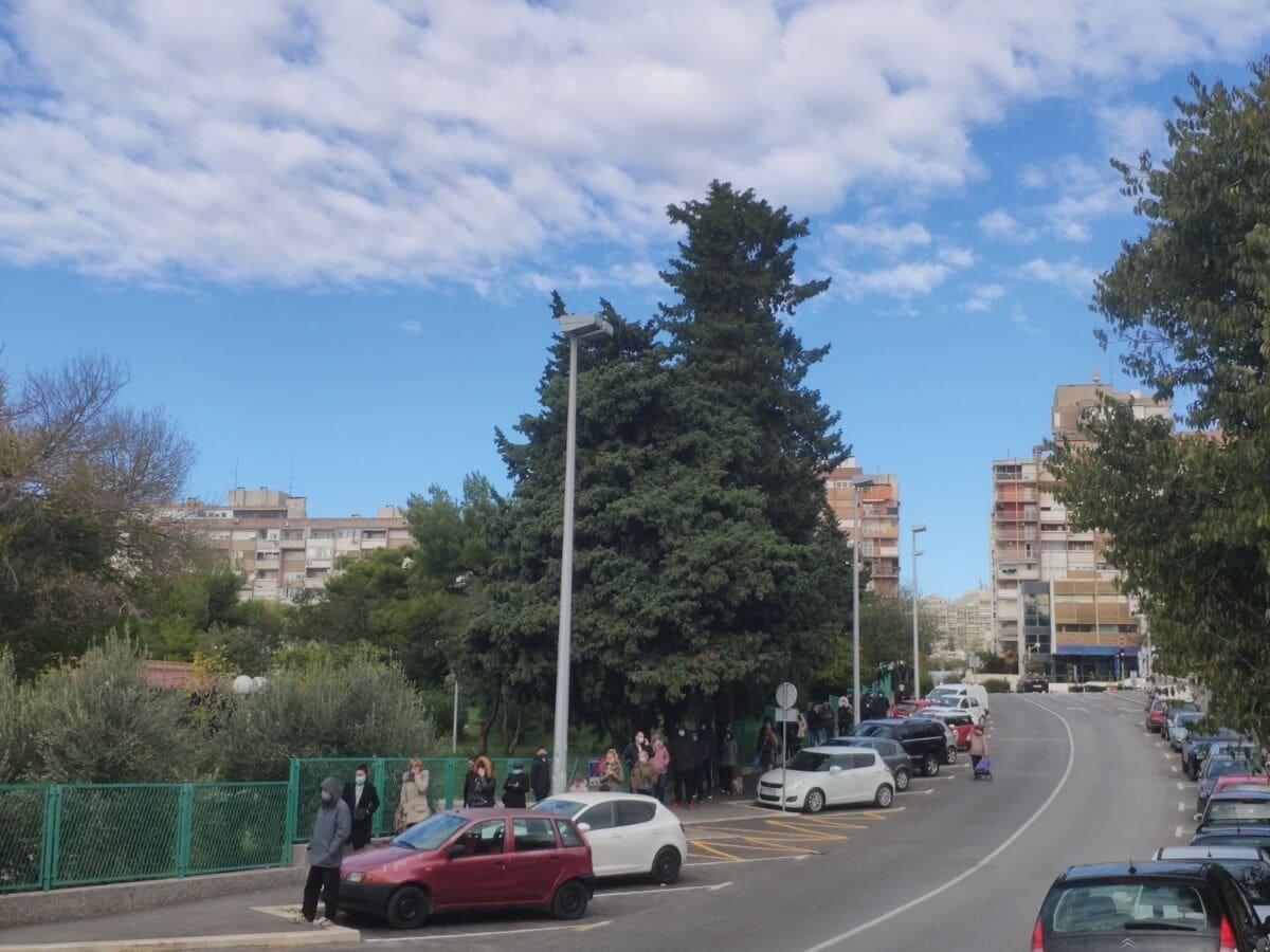 U subotu ujutro snimili smo ogromni red ispred bolnice na Križinama gdje ljudi čekaju za testiranje na Covid.