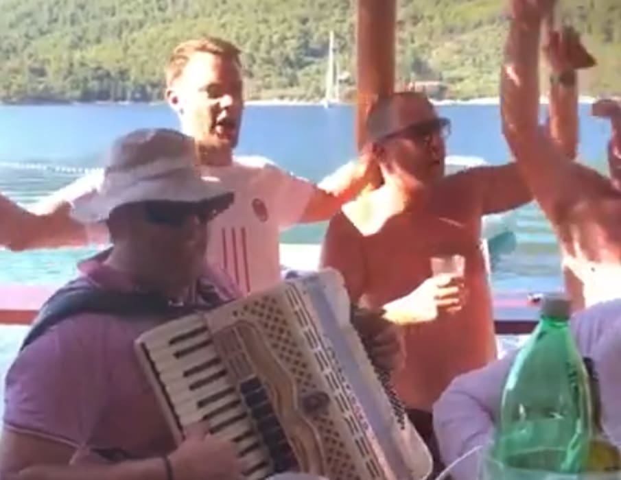 Čitatelj nam je poslao snimku na kojoj Neuer uživa s raspjevanom ekipom. Harmonika, gitara i Thompsonova "Lijepa li si" bili su više nego dovoljni za veselu atmosferu...