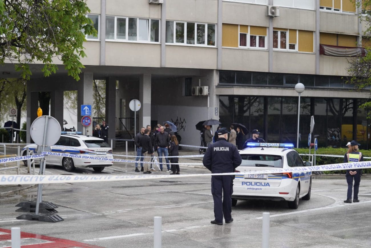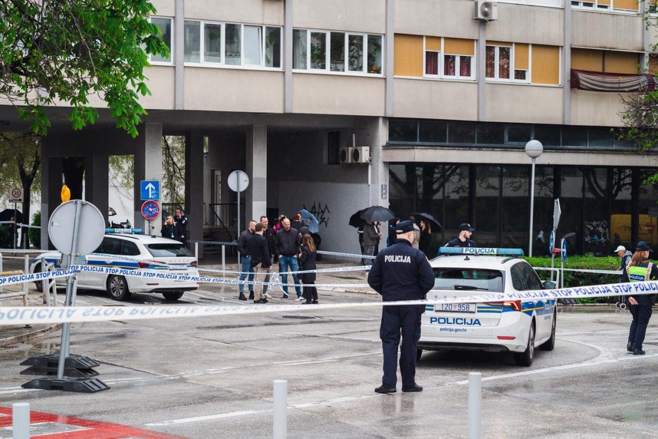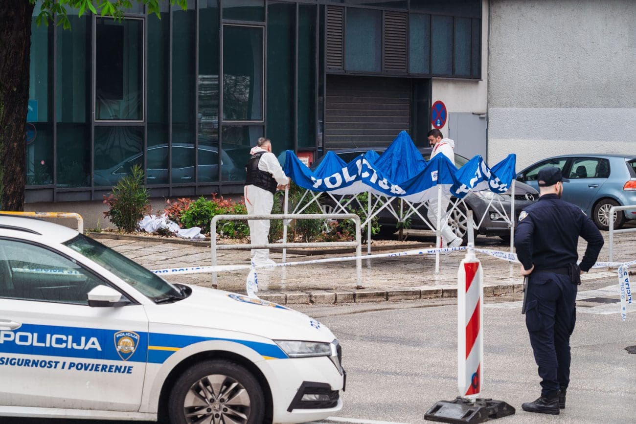 Jedna od policajki se postavila istočno od ulaza, odmaknula se od vrata u smjeru nekadašnje zgrade Elektrodalmacije. Druga se sakrila iz službenog vozila na ulici, iza Škode Octavie, obje s oružjem u rukama.