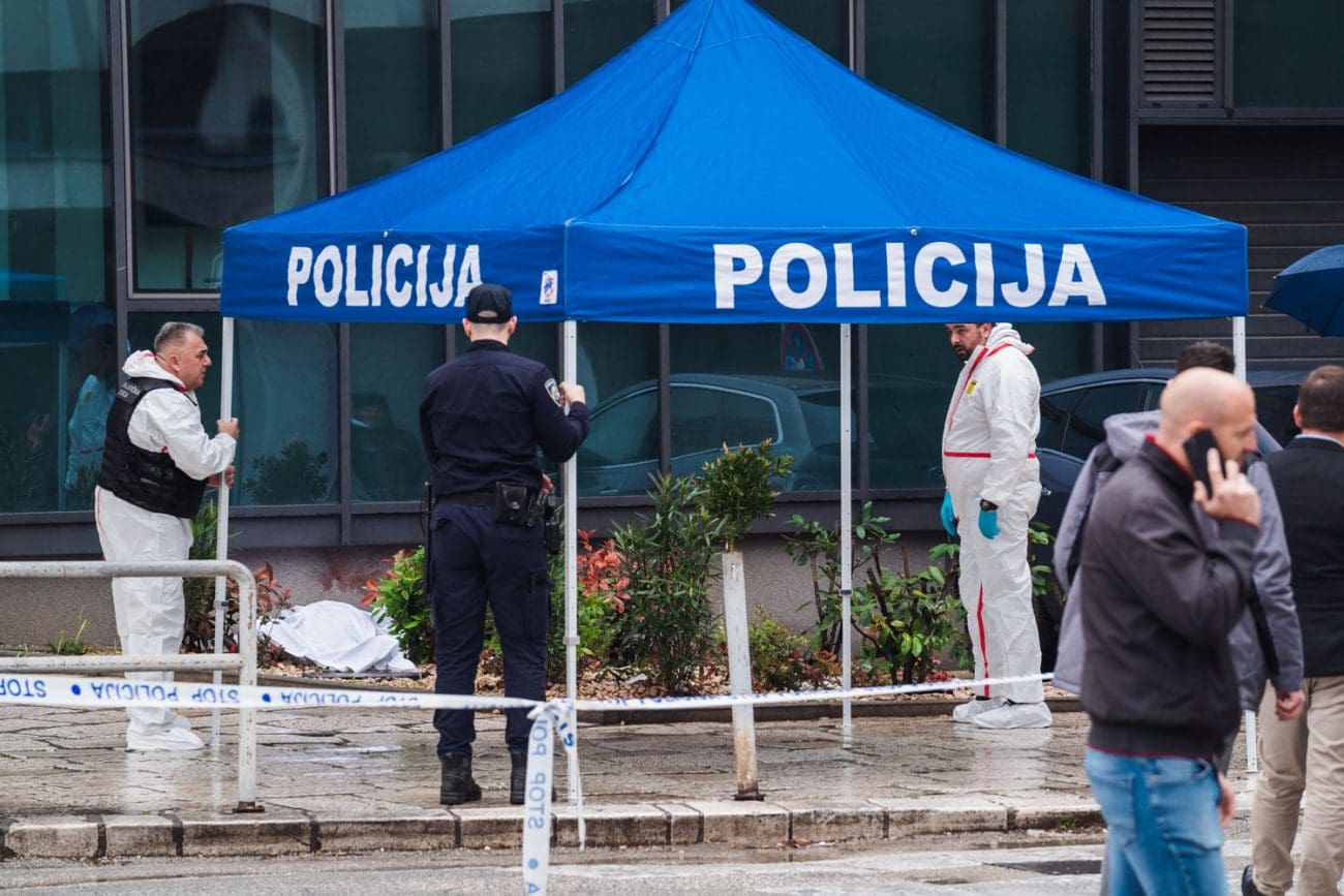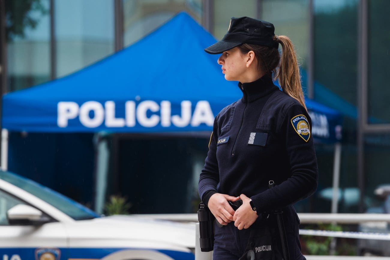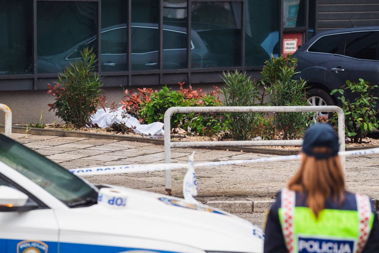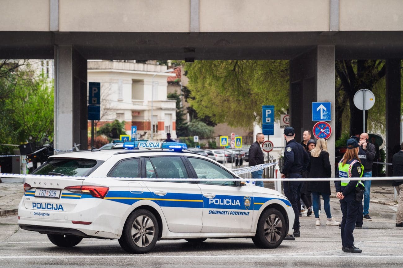 Jedna od policajki se postavila istočno od ulaza, odmaknula se od vrata u smjeru nekadašnje zgrade Elektrodalmacije. Druga se sakrila iz službenog vozila na ulici, iza Škode Octavie, obje s oružjem u rukama.