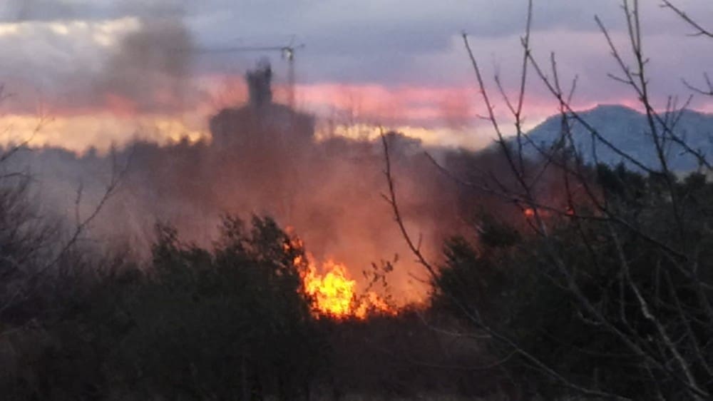 - Gori na dvije lokacije uz sjeverni rub golf terena. Zapaljene su niska trava i trstika. Na teren upravo izlazi pet vatrogasnih vozila i trinaestero vatrogasaca.