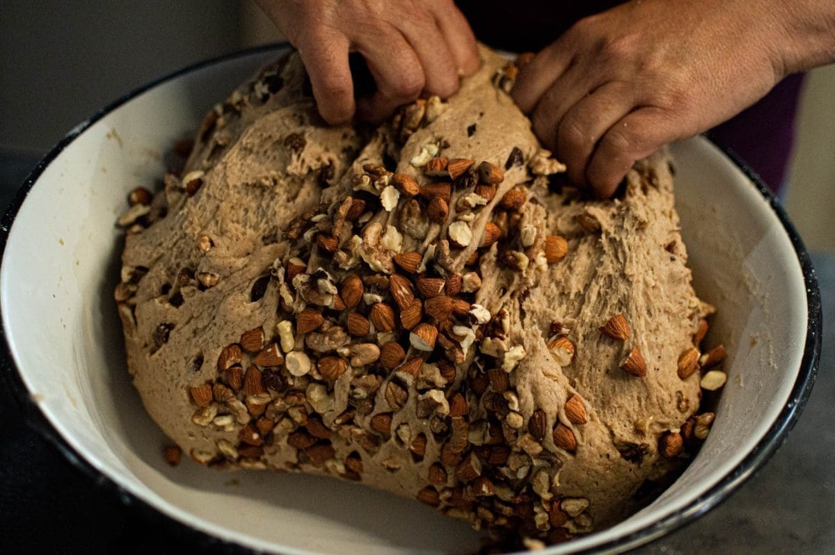 Teta Cota mi da kvas na pijatu od late i ja brzo nase doma. I moja mater se ćapa posla, misi u te drvene kopanje i stavje sve odoka, ni receta, sve što je parićala i misi,misi a undar pokrije s bilu tavaju i sti deku u puno duplini na to kopanja i osti da uzahodi. Dojde vrime za leć a tisto za lumblije još ni uzašlo,sad znan da je to tako moralo bit, jer je tisto teško, puno mirodija, cukara i ni mu se lako dignut, i ležemo mi, ma se mat svako malo dizala vidit kako tisto stoji.