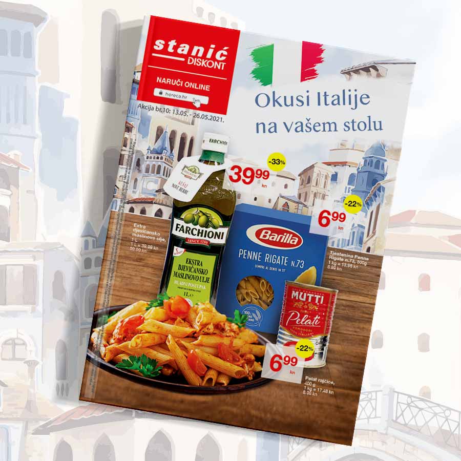 Kakvo god vrijeme bilo vani u ovom prevrtljivom svibnju uvijek možemo unijeti u svoje domove mediteransku toplinu s vrhunskim talijanskim proizvodima. Diskont Stanić s novim katalogom u vaše domove donosi vrhunsku tjesteninu, pizze, torteline, rižu, njoke i umake pomoću kojih možete napraviti fina jela.