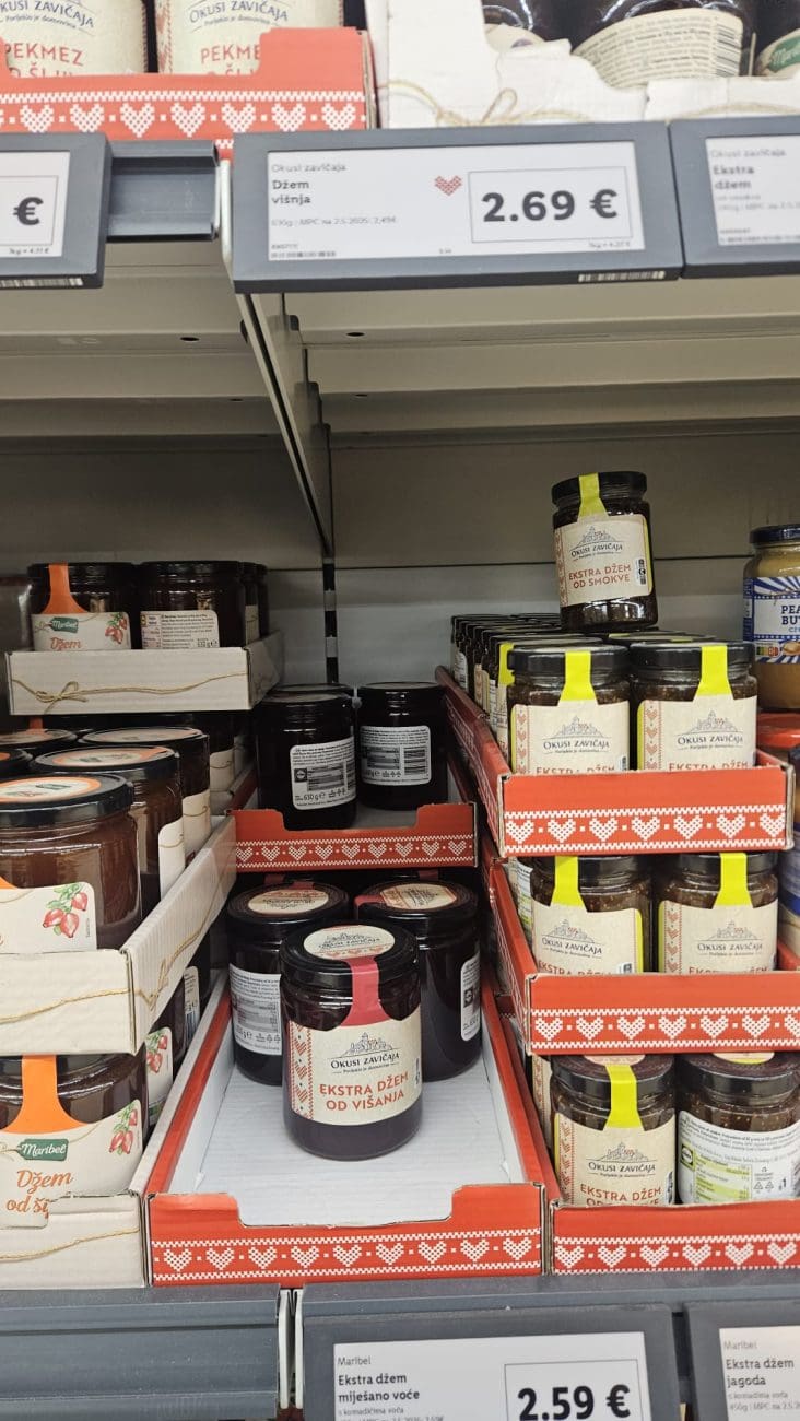 Sami smo se htjeli uvjeriti u tvrdnju navoda našeg čitatelja te smo se uputili u obližnji Lidl i pronašli spomenuti džem. Cijena proizvoda je 2,69 eura za staklenku od 630 grama. Džem je, zaista, ukusan, osjete se komadi voća i cijena je prihvatljiva. Oprali smo staklenku u perilici posuđa te smo se uvjerili u istinitost navoda našeg čitatelja s početka priče. Ispod etikete ''Okusi zavičaja'' nazire se etiketa na litavskom jeziku. Ako ne znate što tražite, teško bi na prvu shvatili.