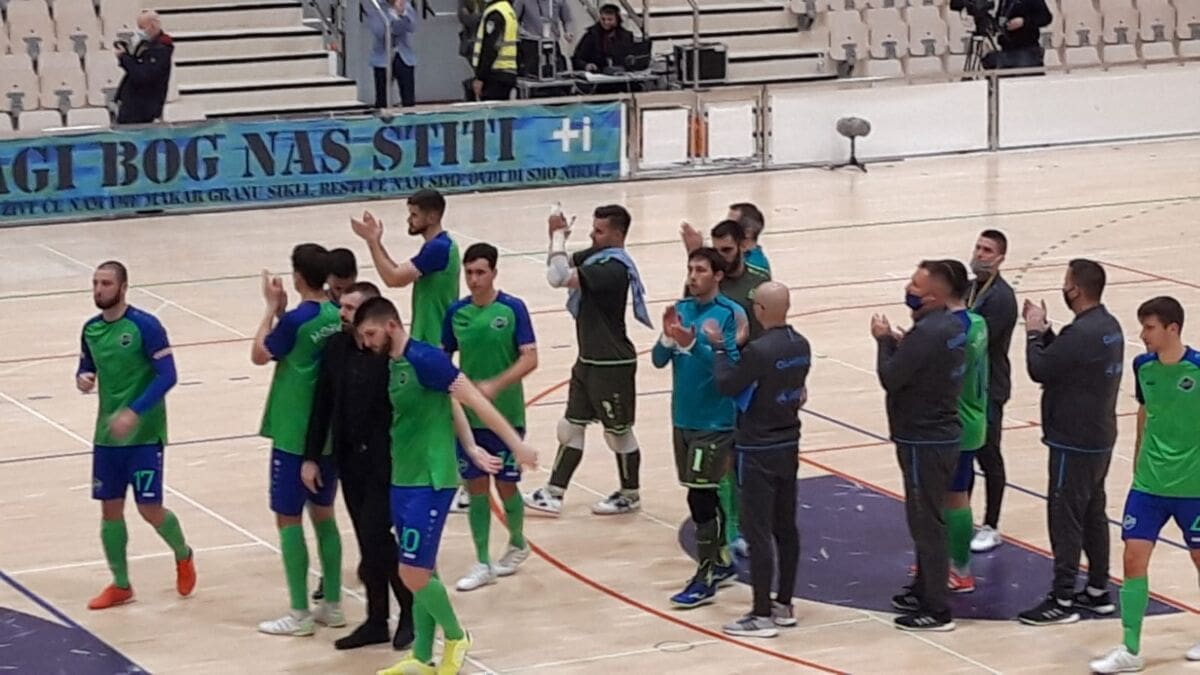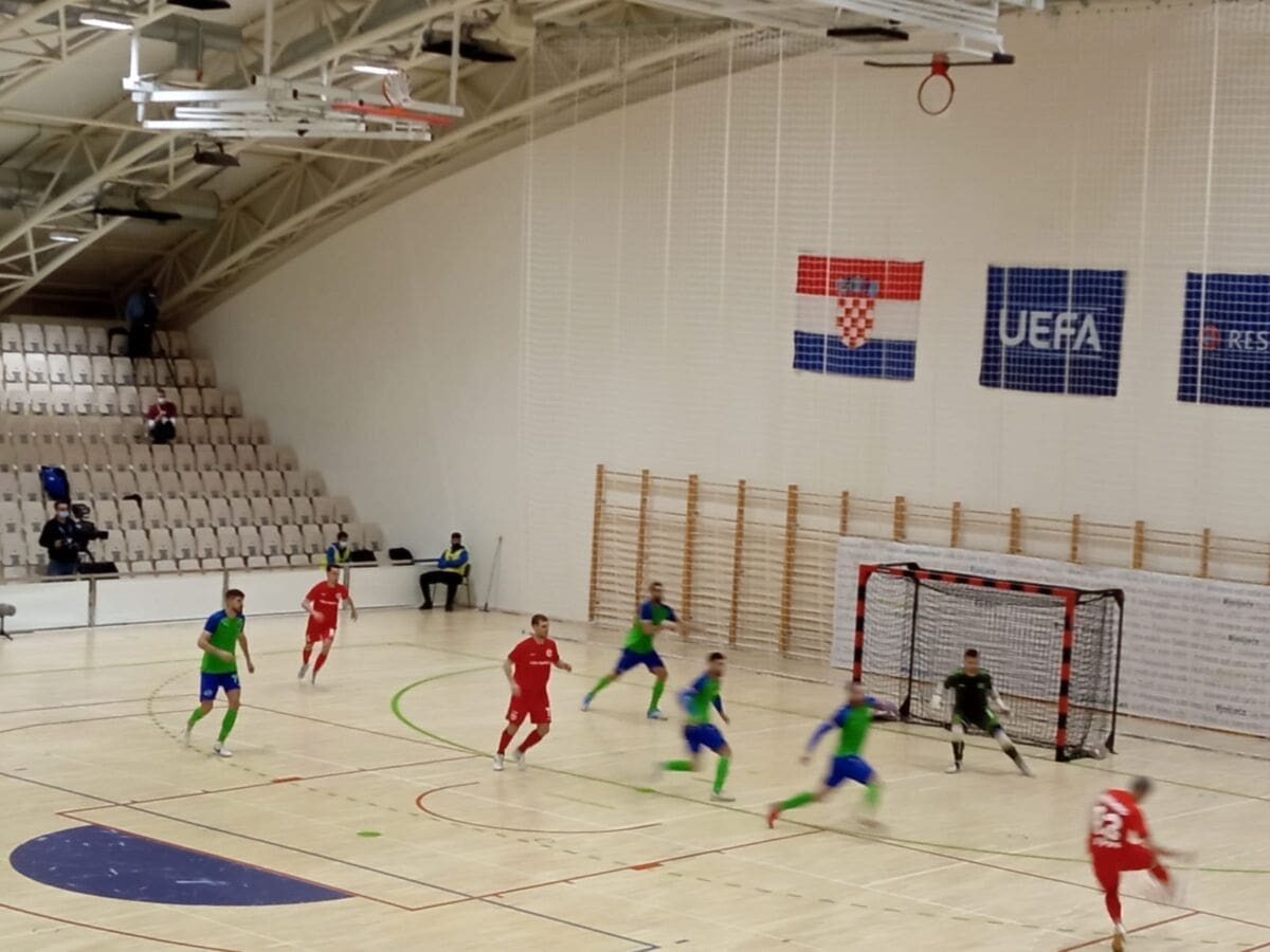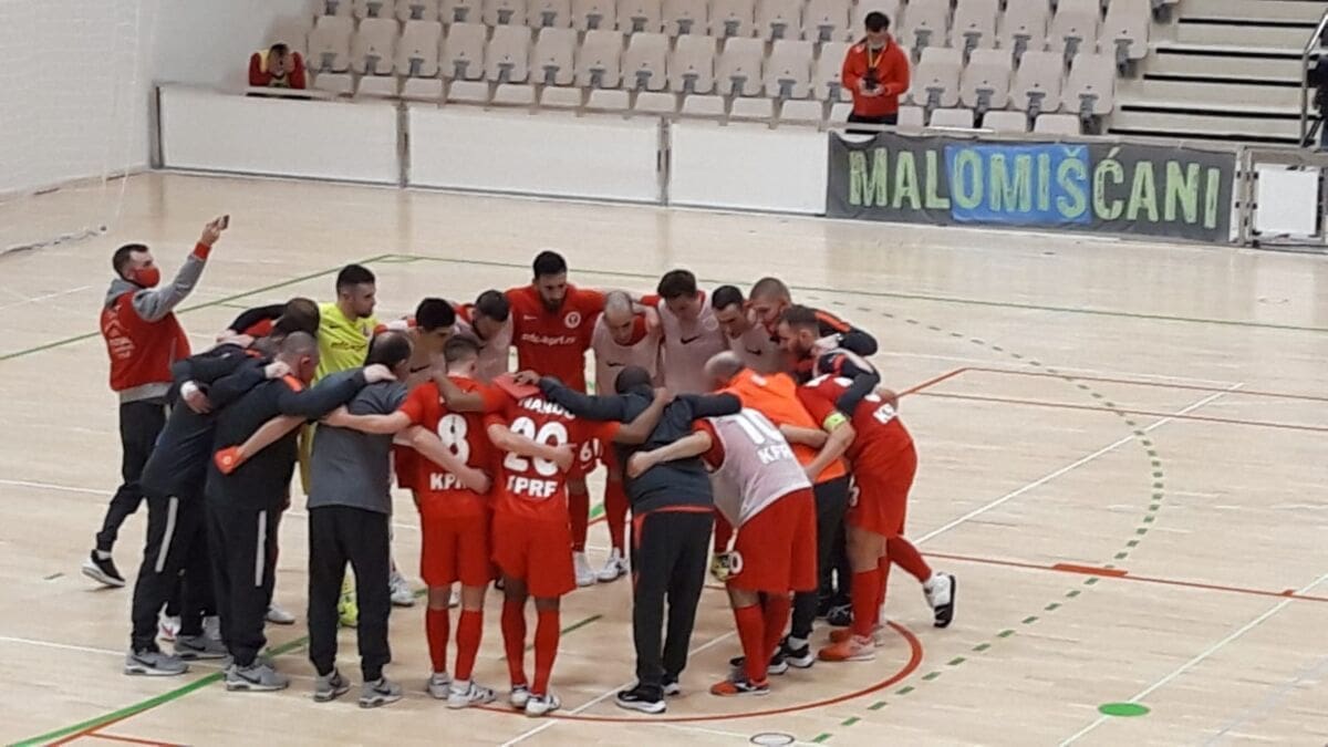 S prvim sučevim zviždukom počela je jurnjava u dvorani na Ribnjaku. MNK Olmissum je igrao samo jednu utakmicu za prolaz među osam najboljih klubova u Europi protiv ruskog KPRF- a. Favorizirani Rusi su od početka imali više loptu u nogama, više prijete vrataru Luketinu. Tijekom susreta su bili opasniji, ali Omišani su se borili kao lavovi, ostavili srce na parketu. Činilo se da je iznenađenje moguće, da hrvatski predstavnik može parirati ruskom predstavniku.