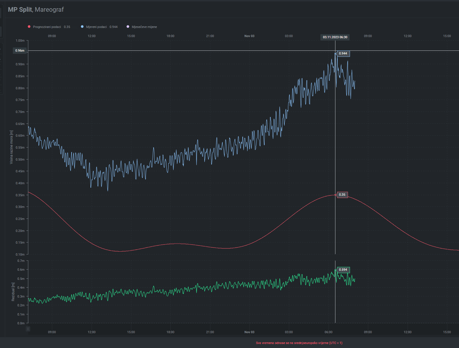Na mareografu se vidi da je more bilo najviše u 6.:30: