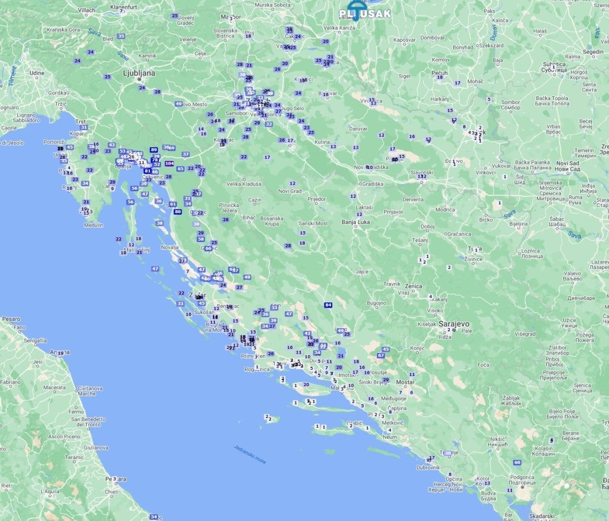 8:20 - U 8:20 najvuše grmljavine ima u dijelu Dalmatinske zagore. Prema podacima mreže postaja Pljusak.com, do spomenutog termina najviše oborina je palo u Rudi; 48 litara po metru kvadratnome. Trilj je na 31. KIjevo 44, Drniš 25, Šibenik 20 itd. Splitsko i makarsko područje zasad je dobilo tek 2 do 6 litara.