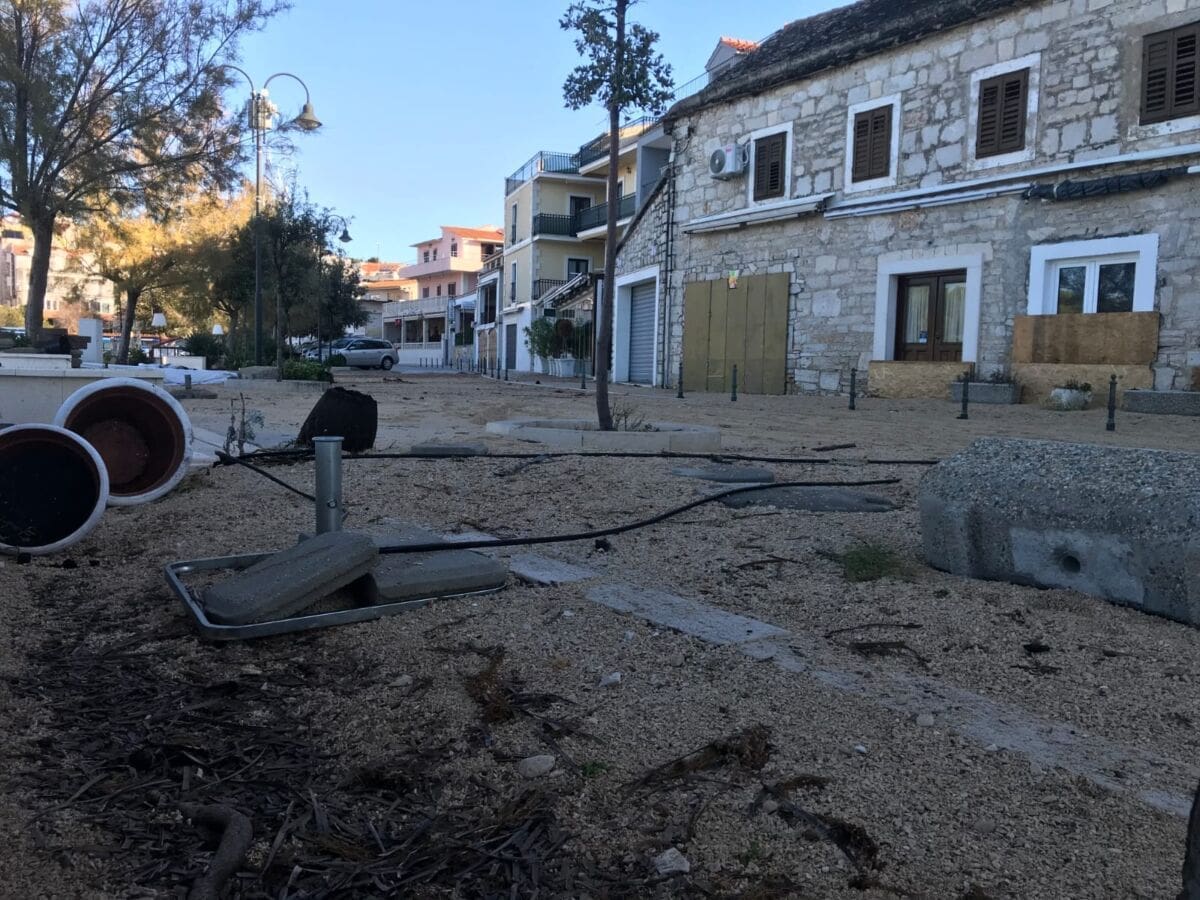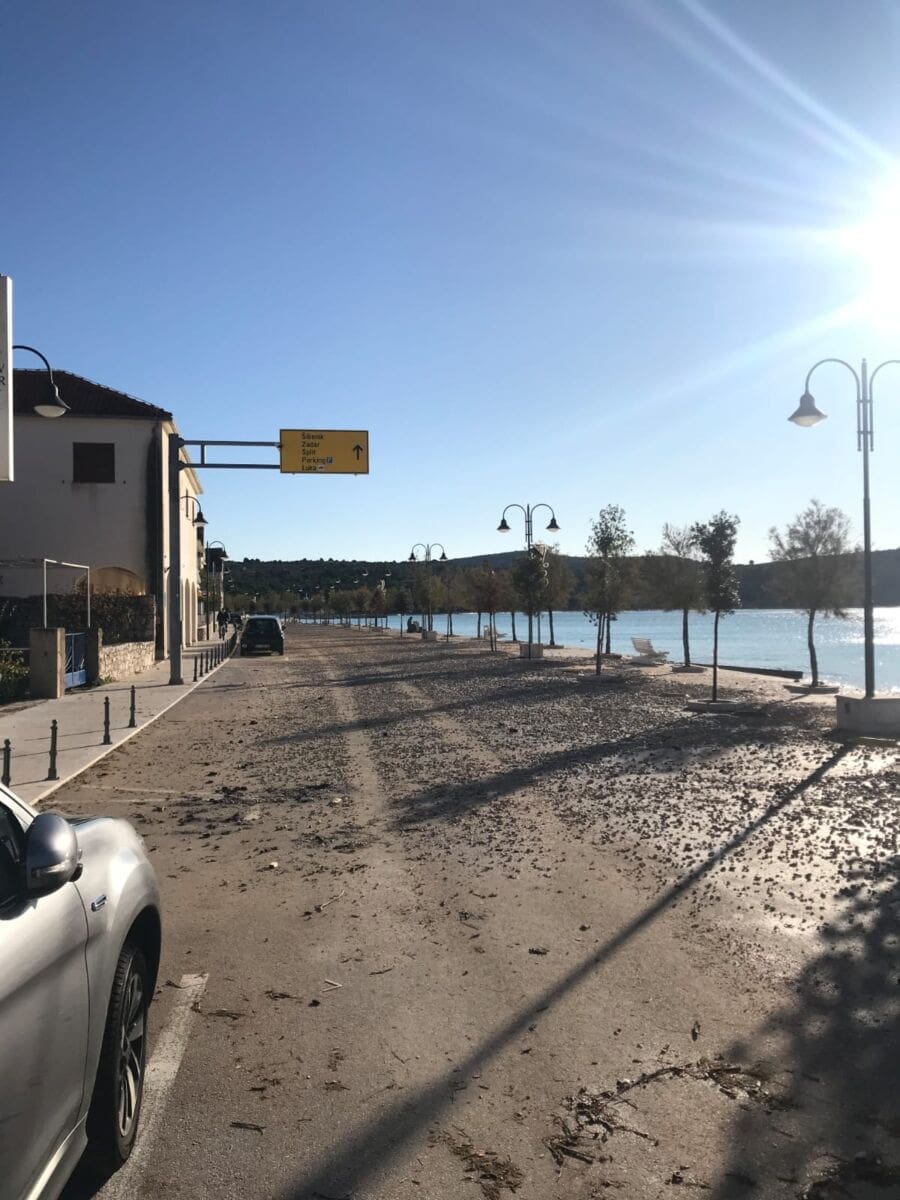 Štete je bilo i u Primoštenu i to u dva navrata. Prvo je cijelo područje zahvatilo olujno jugo i visoki valovi u petak navečer, a onda je u subotu rano ujutro bilo snažne pulentade.