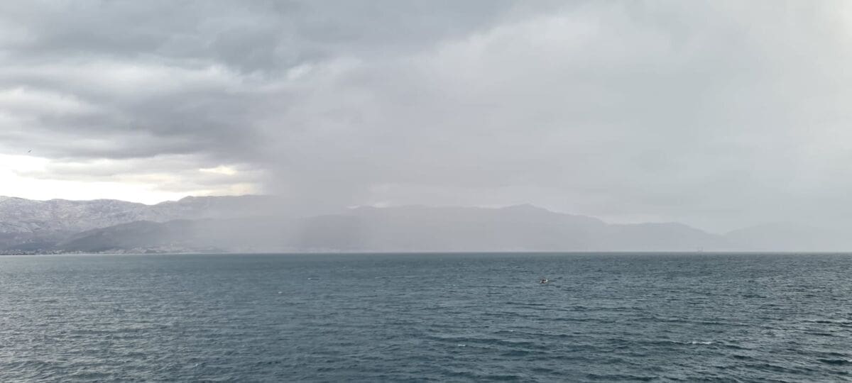 Pomalo atipično za siječanj, već danima na moru traje grmljavinska aktivnost, a iznimka nije bio ni današnji dan. Na moru su se povremeno stvarali kumulonimbusi koji su donosili kišu, pljuskove i grmljavinu. Jedan takav u večernjim satima razvio se na moru kod Drvenika te se postupno premještao prema Šolti i Čiovu.