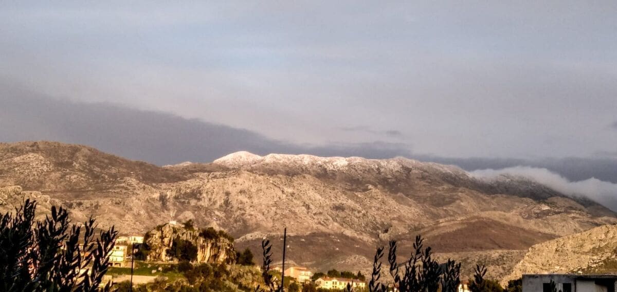 Ponovno je bilo snijega u planinama, a snježna granica se malo spustila u odnosu na jučer. Tako je snijeg na Mosoru padao danas iznad 1000 metara nadmorske visine, na Biokovu iznad 900, a na Dinari, Svilaji i Kamešnici iznad 700 metara nadmorske visine.