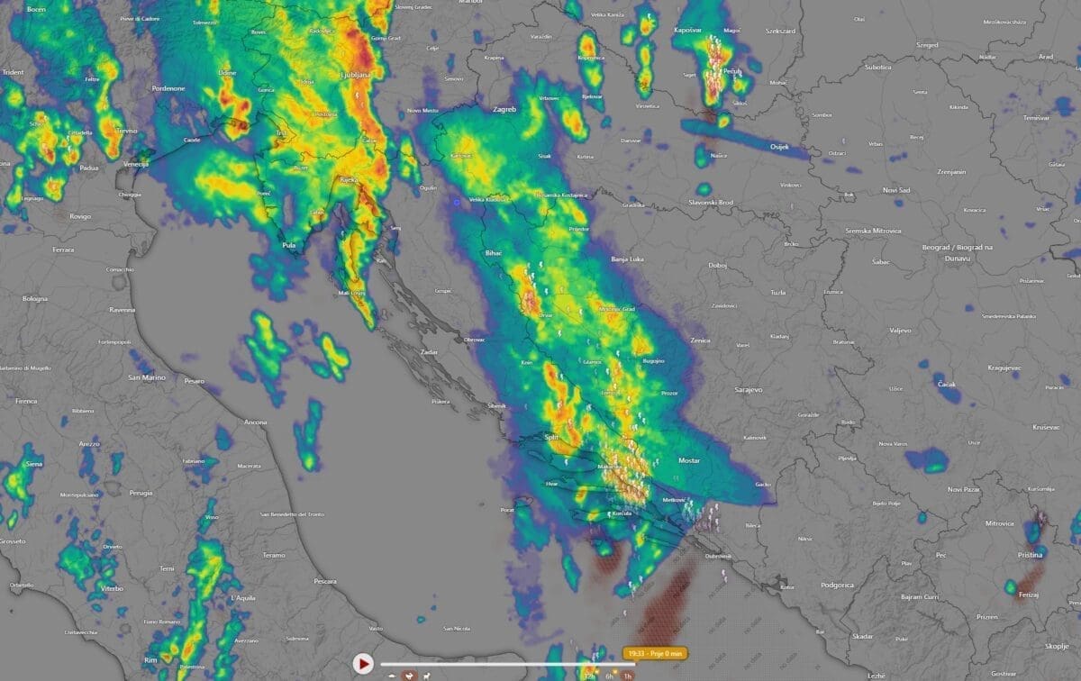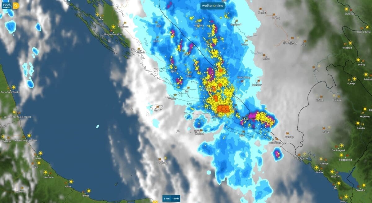 Grmljavinski oblaci prvi put danas stigli su do južne Dalmacije, pa je i tamo moguće nevrijeme tijekom večeri.