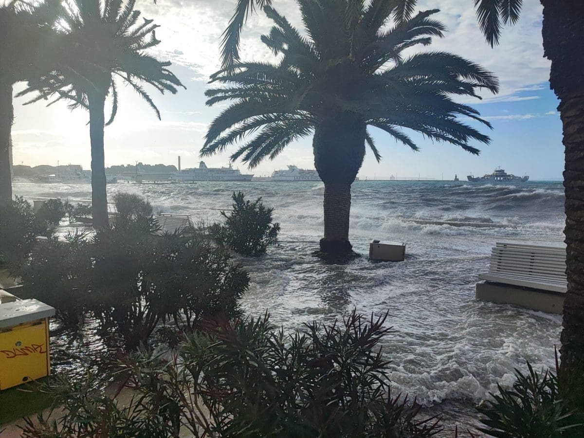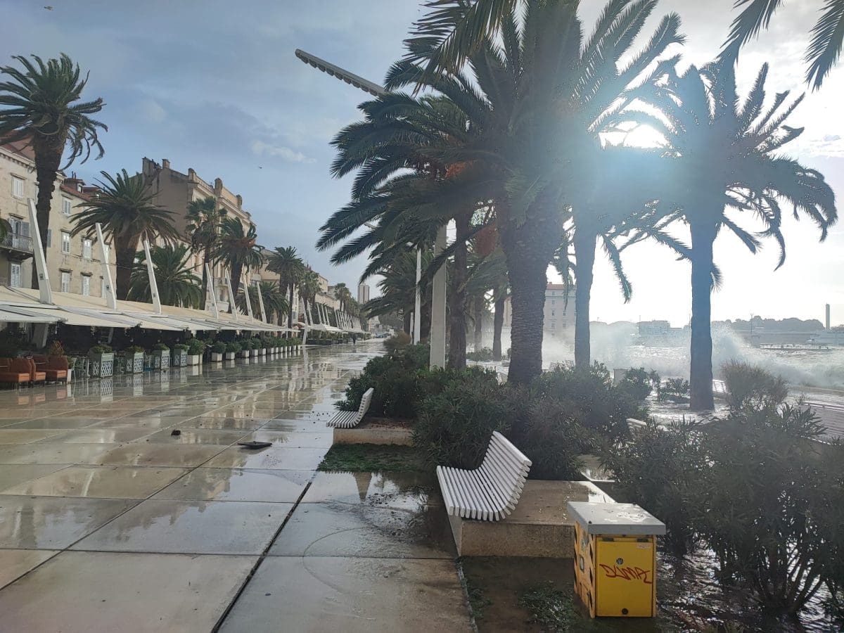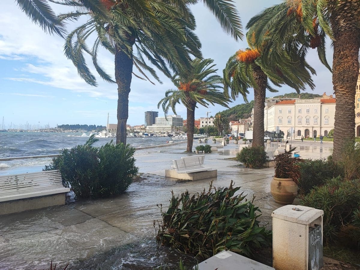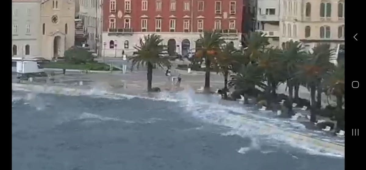 Zbog olujnog vjetra očekuje se i plavljenje obale. Pod morem je splitska Riva i Matejuška.