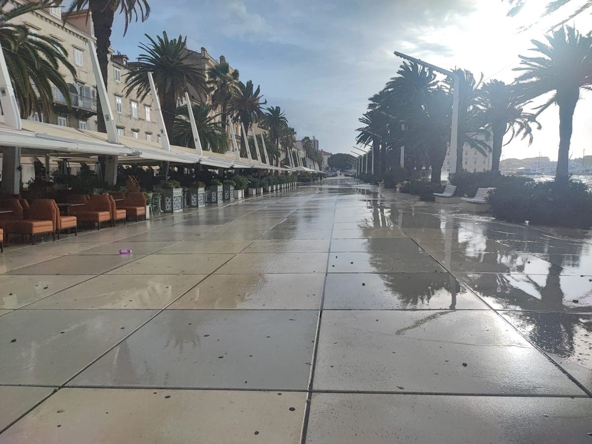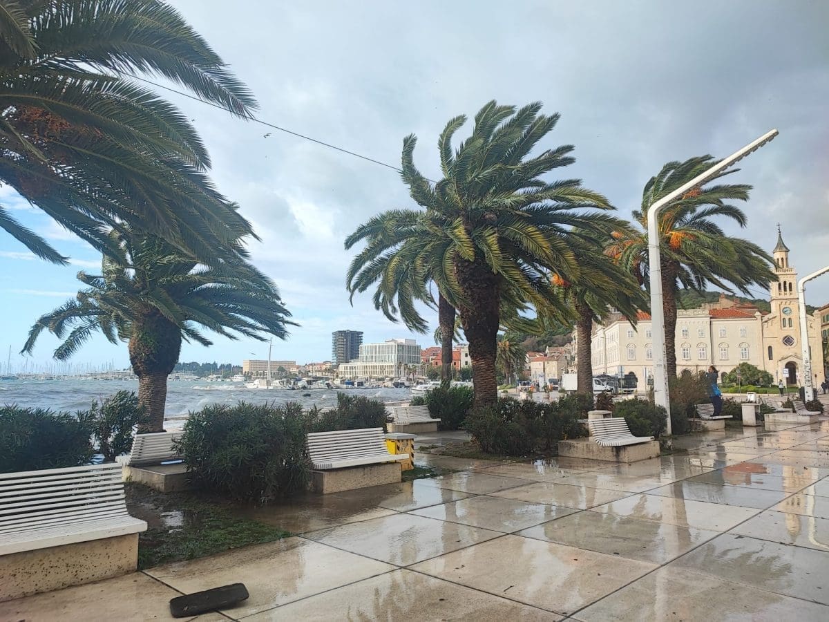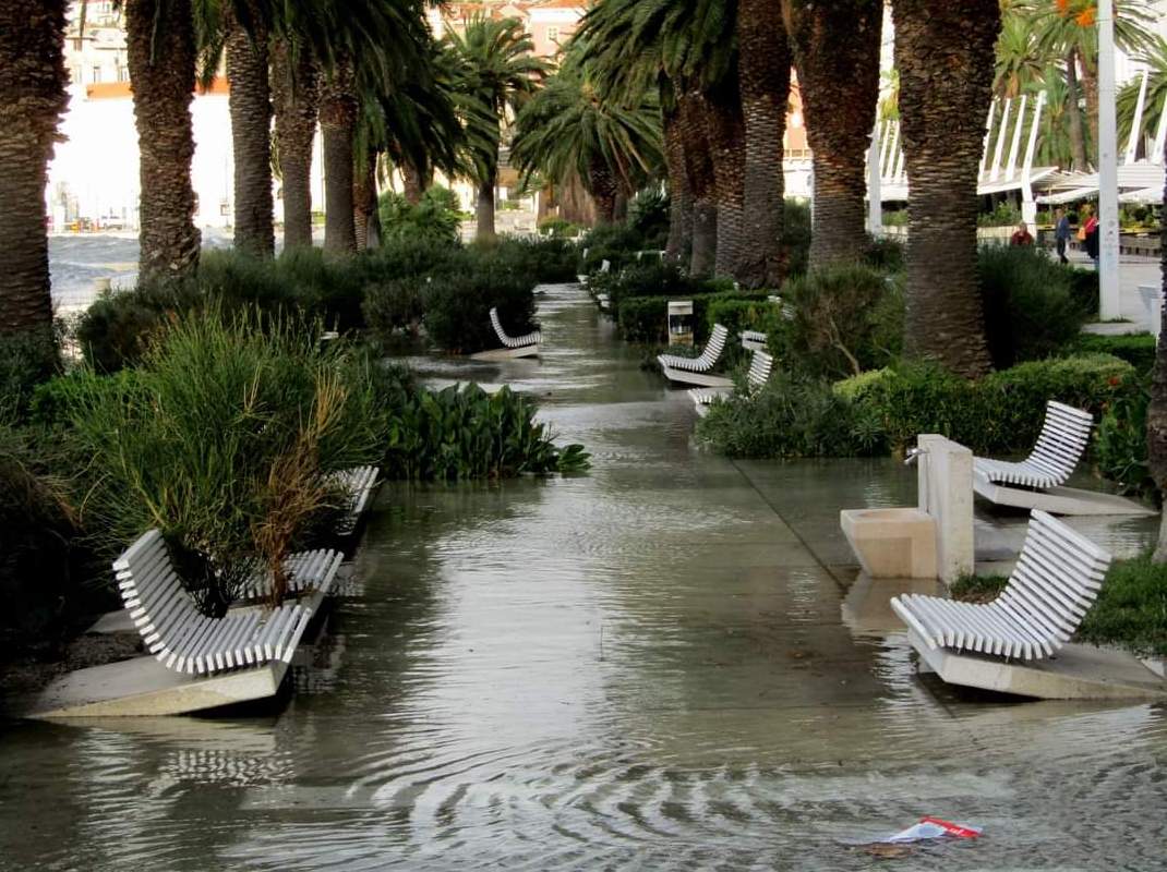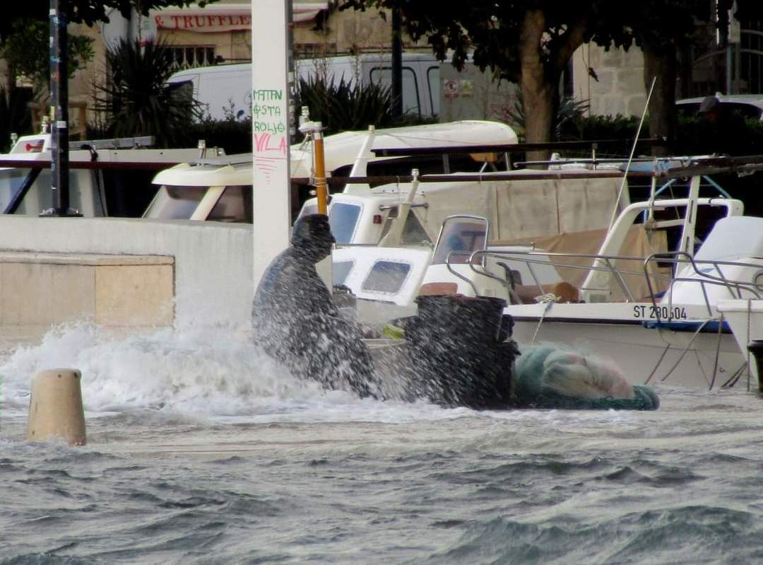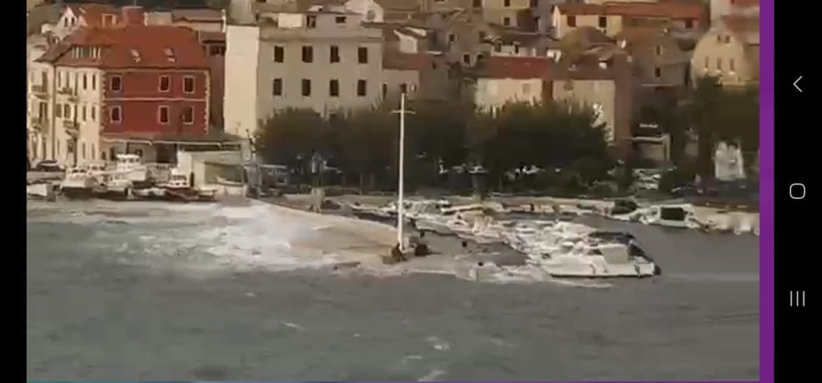 Zbog olujnog vjetra očekuje se i plavljenje obale. Pod morem je splitska Riva i Matejuška.