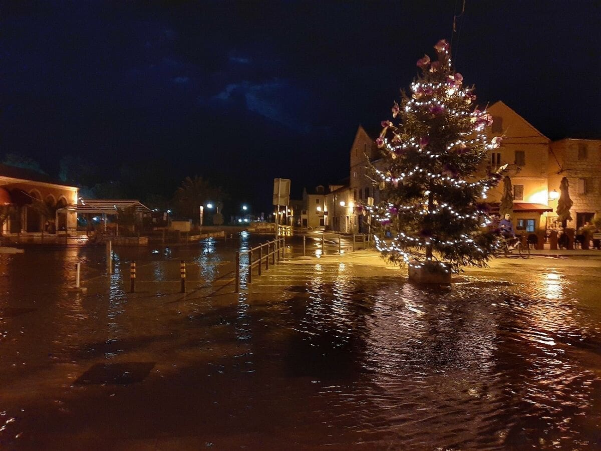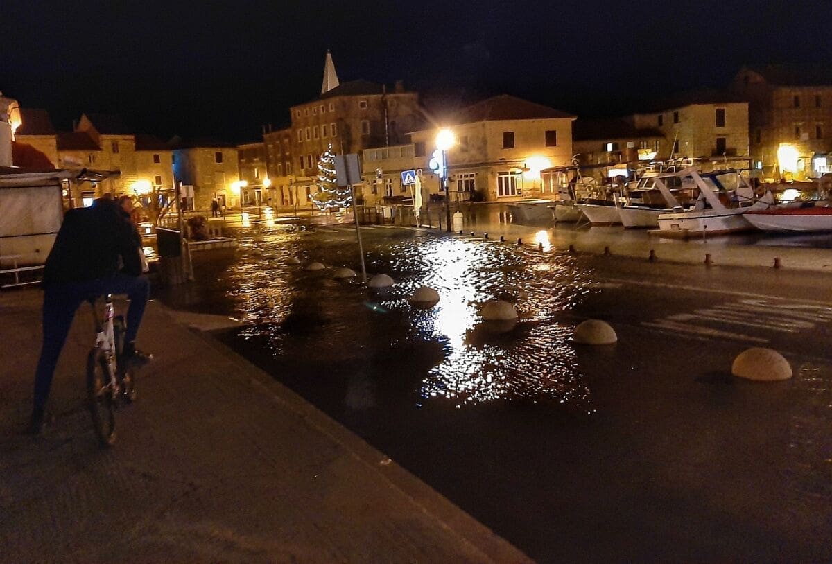 Niski tlak zraka digao je razinu mora pa je ponegdje uz obalu i na otocima zabilježena ciklonalna plima. Osim Trogira, i niži dijelovi Omiša u ponedjeljak navečer su se našli pod morem.