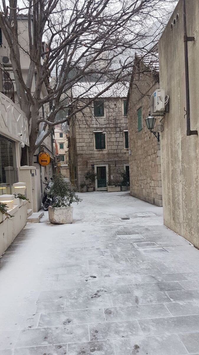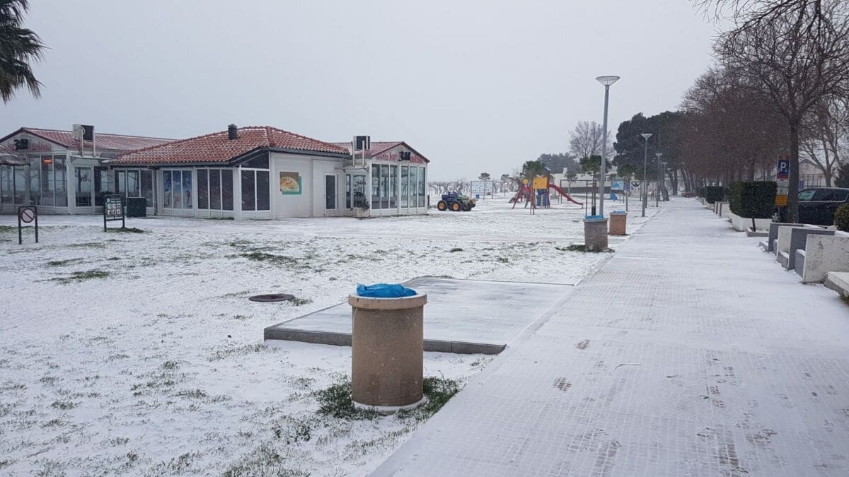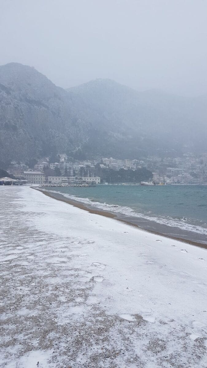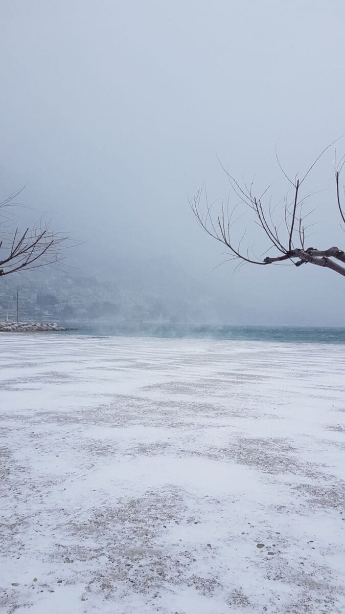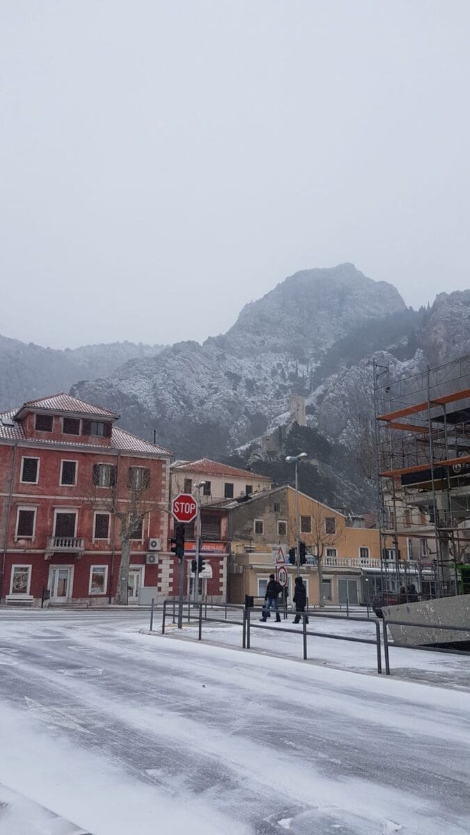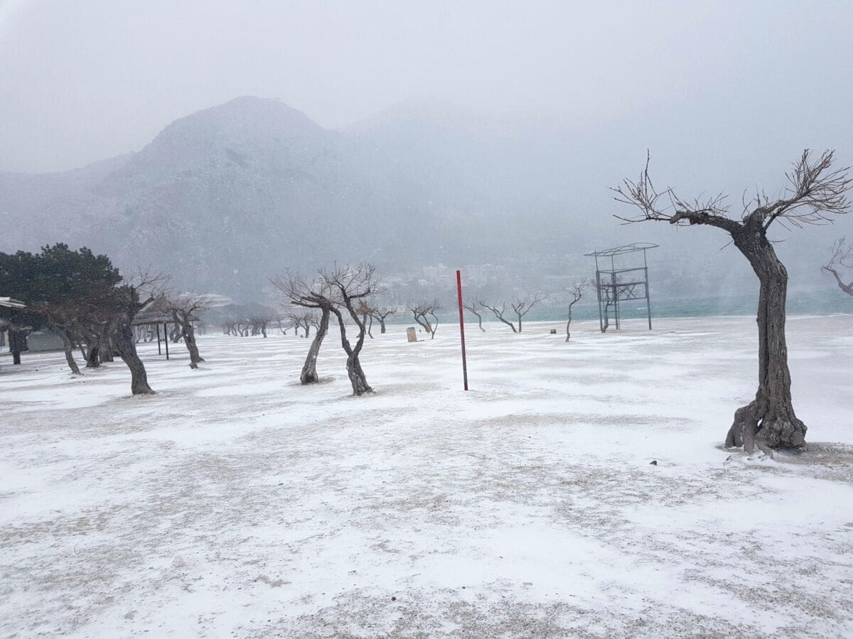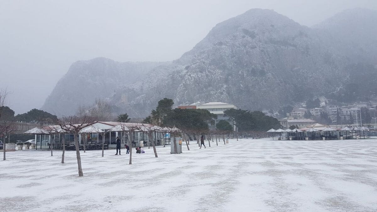 Omiš je dobio prvi snježni pokrivač od 2012. godine! Snijeg pada gotovo cijeloga dana pa se grad na ušću Cetine zabijelio. Temperatura je u gradu pala na 2 stupnje ispod nule, a Borak je bio još hladniji s -4°C.