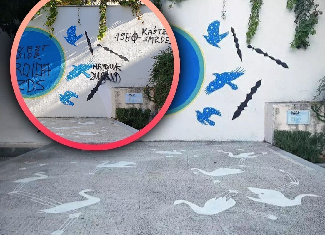 "To je rad nastao na Almissa Open Art Festivalu, financiran je od Ministarstva kulture i Grada Omiša u sklopu programa 13. izdanja festivala. Rad je eminentne autorice Andree Resner koji je bio jako pitak i primjenjiv za područje škole. Nije imao nikakvu snažnu konfrontirajuću poruku prema ikome, ali ovaj vikend je grupa delikvenata napravila devastaciju. Napisali su razne fašističke simbole i navijačke parole, a HEP koji je vlasnik dijela prostora je na prijedlog MUP-a naložio hitnu sanaciju. Nije se uopće uzelo u obzir da je tu bio vrijedan umjetnički rad i sve je prebojano", kazao nam je Vice Tomasović, predsjednik HULU-a.