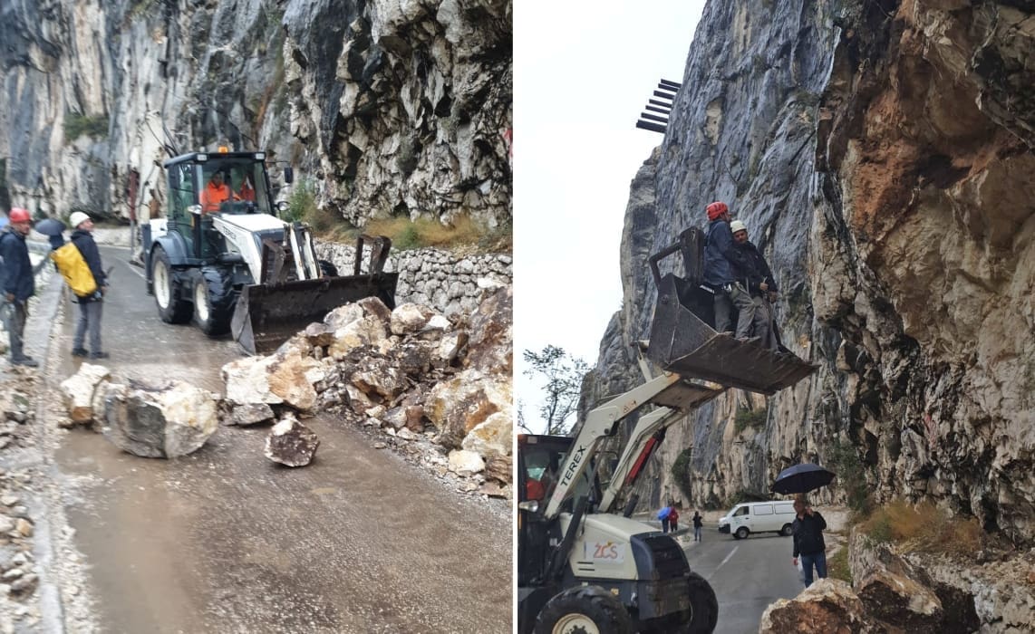"Danas, u jutarnjim satima, na dionici državne ceste D70, kod Omiša uslijed obilnih padalina i vjetra dogodio se odron koji za posljedicu nije imao materijalnu ili drugu štetu. Cesta je zatvorena do daljnjega, kako bi alpinisti uklonili preostali nestabilni materijal iz zone odrona koji je ostao na litici.