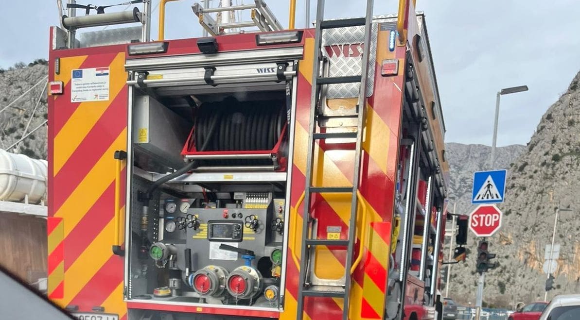Jedno vatrogasno vozilo sa dva vatrogasca prošlo je centrom Omiša.