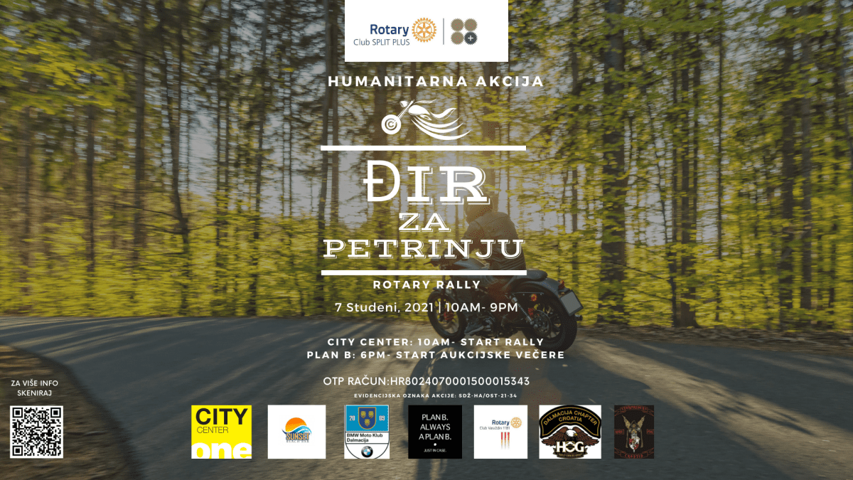 Zato su članovi iz Rotary Cluba Split Plus odlučili pokrenuti humanitarnu akciju (Rotary Rally) pod nazivom ĐIR ZA PETRINJU koja traje do 15. prosinca 2021. godine s ciljem da se pomoć Baniji ne zaboravi i da pomognu u obnovi kuća za pet obitelji čiji su domovi stradali u potresu krajem prošle godine.