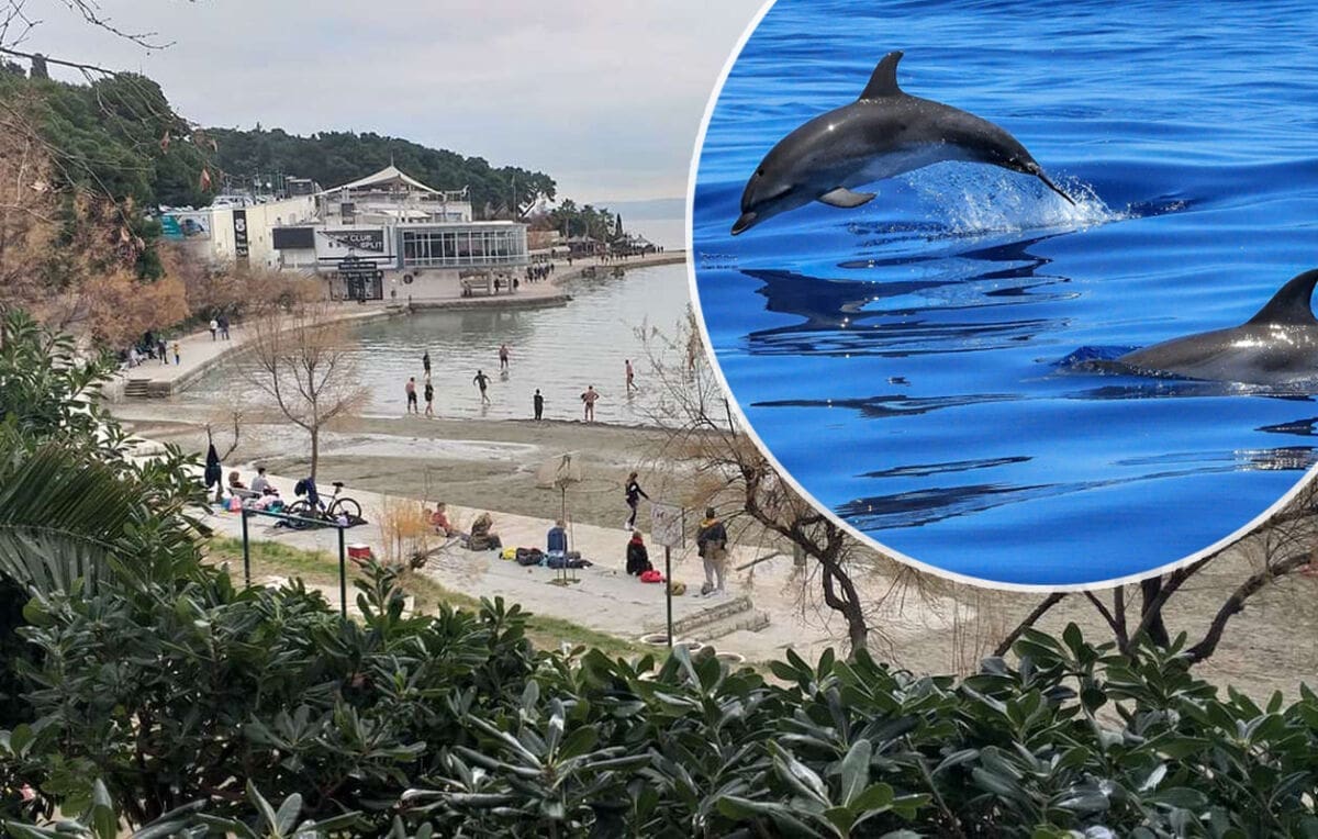 Sve prolaznike oduševilo je razigrano jato dupina nedaleko obale.