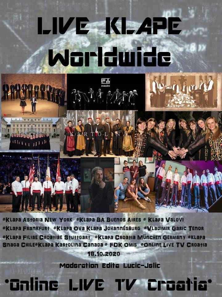 Jeste li ikada prije vidjeli televizijsku emisiju u kojoj uživo gostuje deset dalmatinskih klapa sa četiri kontinenta? Taj jedinstveni klapski događaj možete pogledati ove nedjelje u 15 sati po hrvatskom vremenu, u programu Online LIVE TV Croatia.