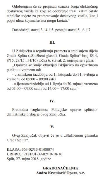 '[ BRAVO MI ] Još jedna smjernica usvojena... gradonačelnik regulirao promet električnim vozilima u centru, ljeti od 5:00-9:00 i popodne od 14:00-17:00, moraju biti registrirana, s tablicama obrta i brojem dozvole te nakandom za prometovanje.'