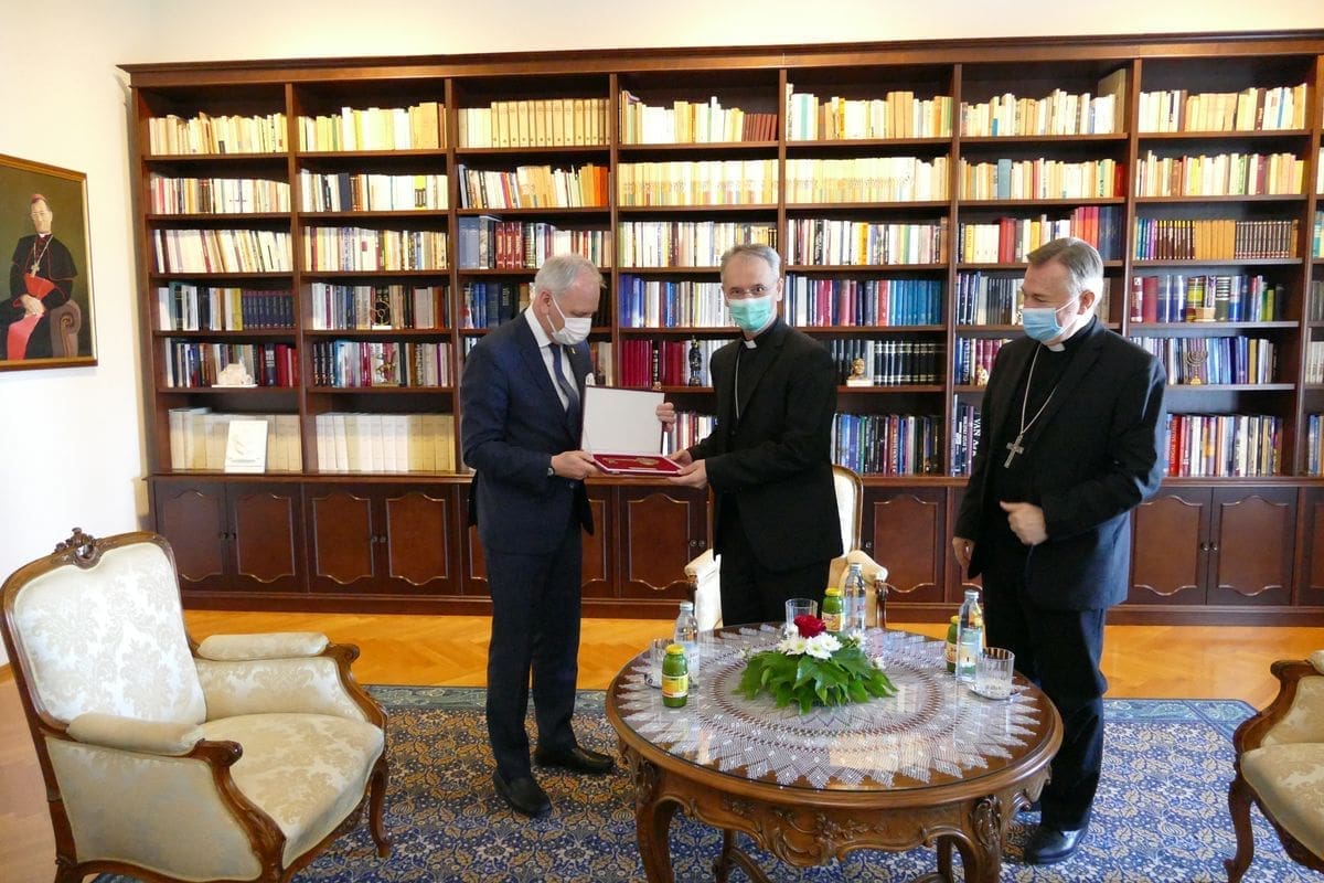 Gradonačelnik Opara je, u znak zahvalnosti na dosadašnjoj suradnji, nadbiskupu Barišiću darovao „Top pisalo“, novi suvenir grada Splita napravljen nedavno u prigodi 500-te obljetnice prvotiska Marulićeve „Judite“.