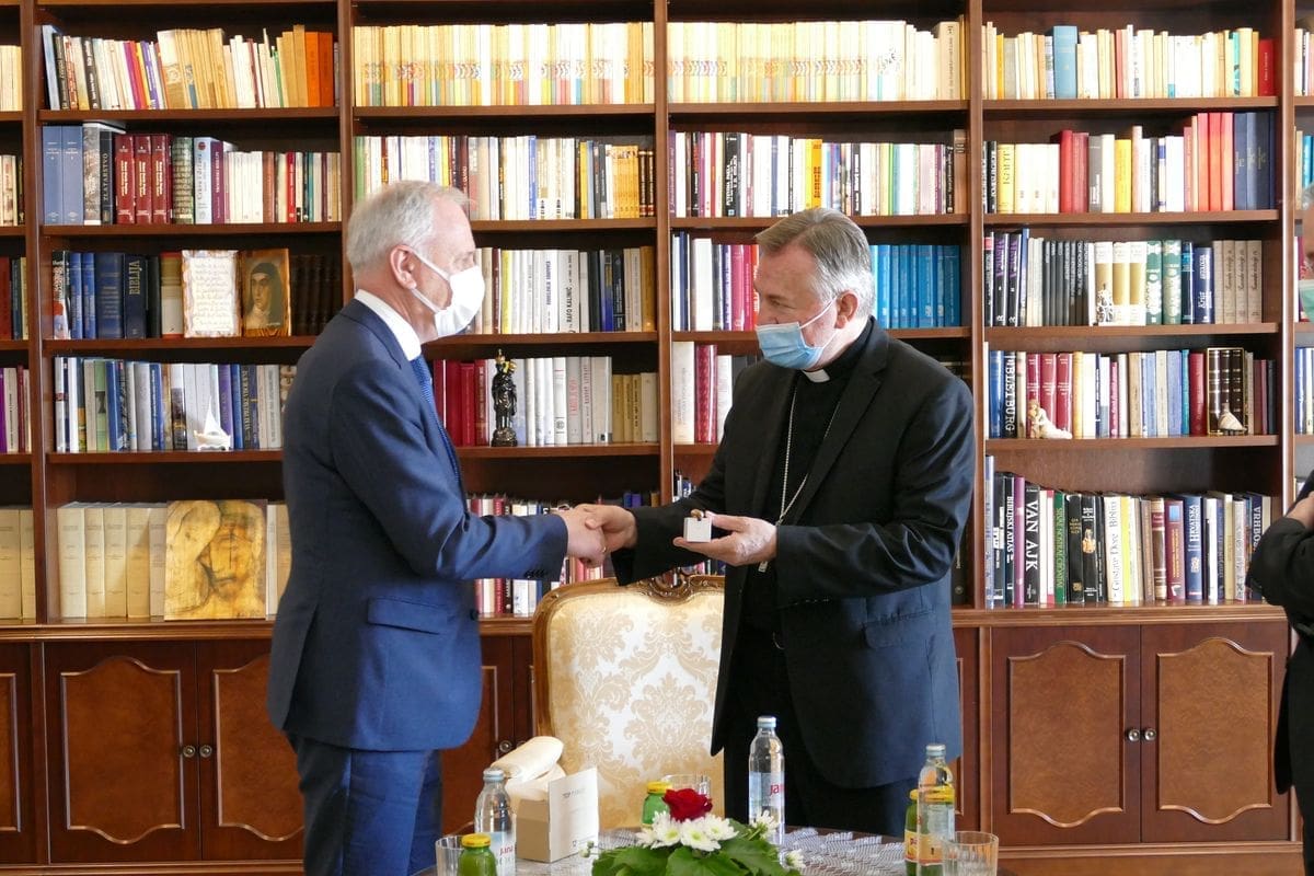 Splitski gradonačelnik Andro Krstulović Opara sa svojim suradnicima Jelenom Hrgović Tomaš, Antonijom Maletić i Ninom Velom posjetio je u ponedjeljak 10. svibnja Nadbiskupski ordinarijat u Splitu, kako bi splitsko-makarskim nadbiskupima: mons. Marinu Barišiću i koadjutoru mons. Draženu Kutleši zahvalio na lijepo, duhovno i svečano organiziranoj proslavi sv. Dujma, zaštitnika grada Splita i Splitsko-makarske nadbiskupije. Sastanku je nazočio i generalni vikar mons. Miroslav Vidović.