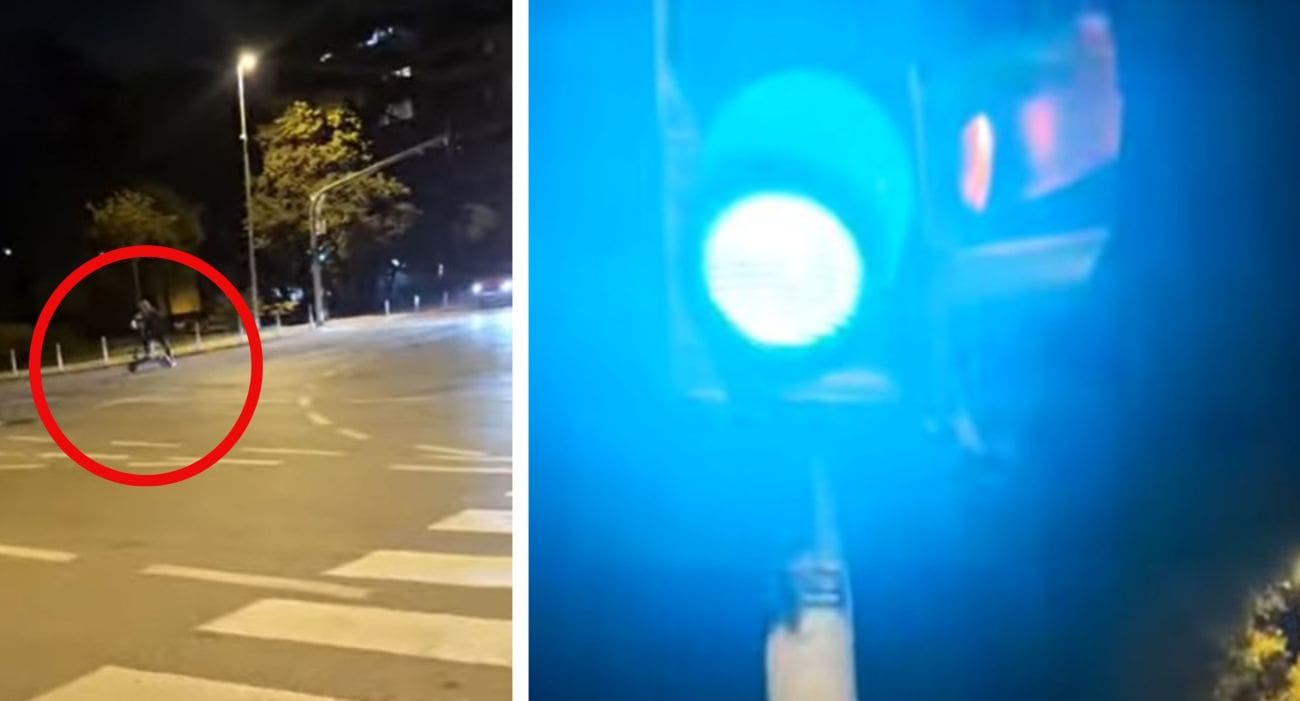 Na snimci zabilježenoj u četvrtak navečer na raskrižju u splitskom kvartu Spinut, u blizini Marjanskog tunela, vidi se vozač električnog romobila koji prolazi kroz raskrižje dok je na semaforu upaljeno crveno svjetlo.
