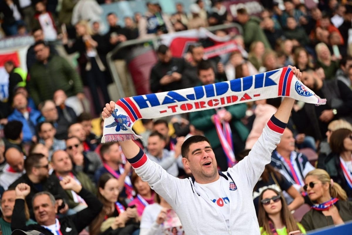 Atmosfera na stadionu je sjajna, a naš fotoreporter je snimio tribine gdje se nalaze simpatizeri splitskog Hajduka. Također, imamo i najnovije fotografije s terena.