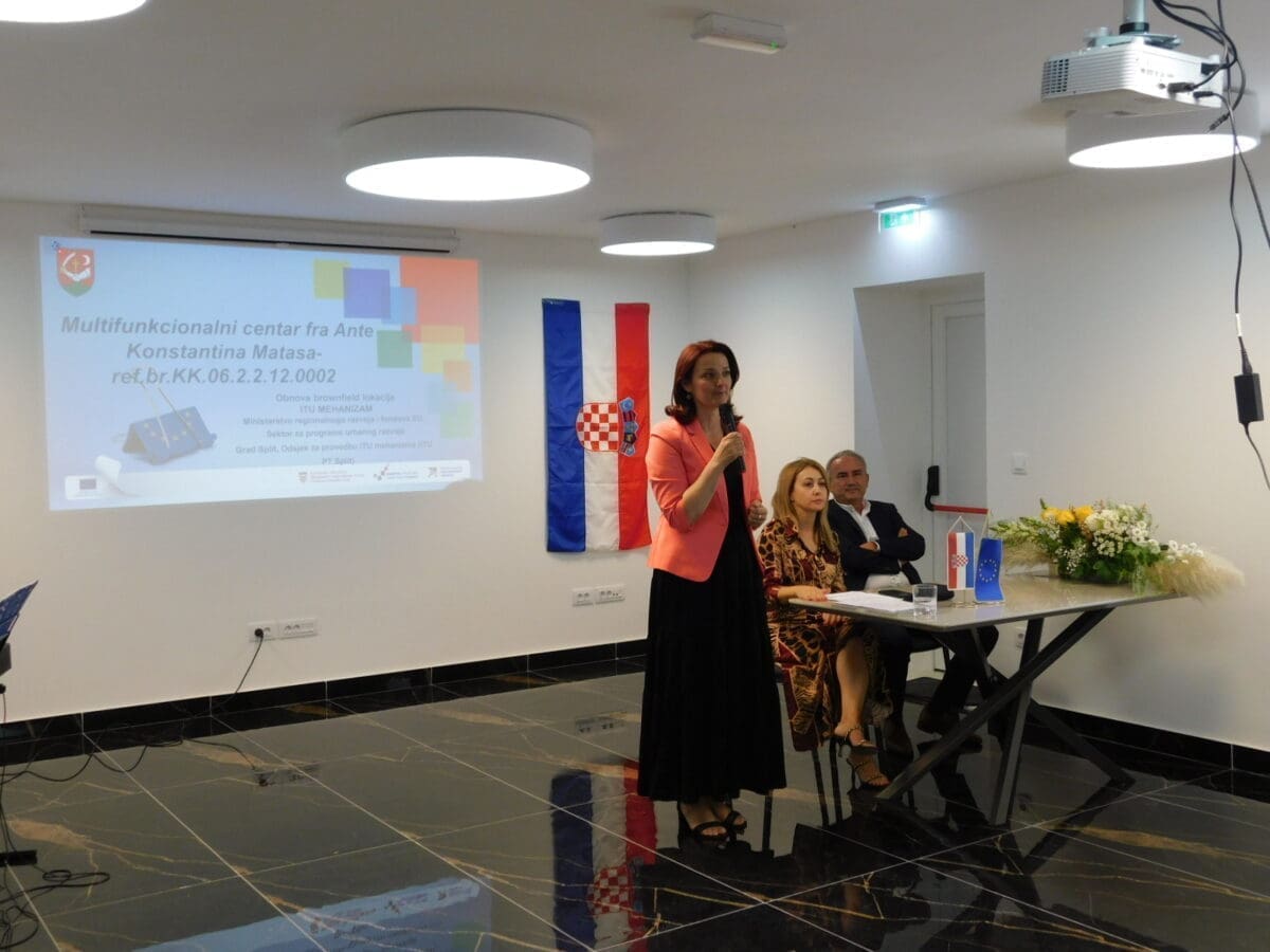 "Ova zgrada će služiti za djelovanje lokalne samouprave i povezanih javnih ustanova, udruga, te za održavanje društvenih, kulturnih i edukativnih događanja na suvremen i inovativan način. U uređenom prostoru je višenamjenska dvorana površine 72,87 m² koja može primiti 70 ljudi, čime se osiguravaju uvjeti za odvijanje društvenih i javih događaja. Manja dvorana u prizemlju građevine uređena je kao čitaonica primjerena za starije lokalno stanovništvo i djecu, a uređenjem okoliša zgrade, lokalno stanovništvo dobit će novi prostor za okupljanja i druženja', kazala je pročelnica. Zahvaljujući se svima koji su sudjelovali u provedbi projekta, podsjetila je kako će se dovršenjem ovog projekta unaprijediti kvaliteta života lokalnog stanovništva i posredno stanovnika Urbane aglomeracije Split, te zaustaviti nepovoljni demografski trendovi"