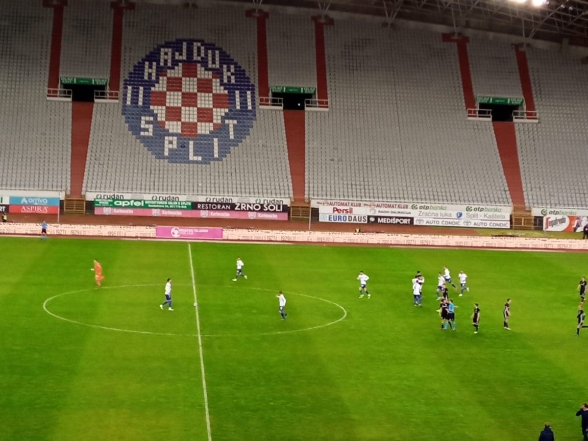 U 23. minuti Livaja je odlično ubacio s desne strane, a Umut je s pet metara pospremio loptu u mrežu za 1:0. U 26. minuti zbog preoštra je starta požutio Fossati. Minutu kasnije hajdukovci su panično izbacivali Belupov ubačaj, što je rezultiralo kornerom, koji je vrlo loše izveden. Livaja i Umut pokušali su sličnu pobjedničku kombinaciju i u 31. minuti, no Umut nije dobro zahvatio loptu. Nakon slobodnjaka Belupa u 38. minuti Lulić je pokušao volej iz daljine, bez opasnosti za Hajdukov gol.