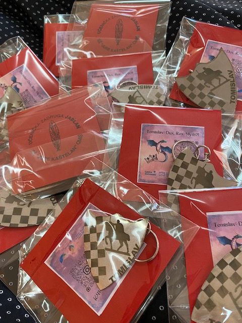 Osim Čuvarima baštine kralj Tomislav je motiv i članovima školske zadruge Jablan koji su za sudjelovanje u Dalmatinskom suveniru izradili privjeske u obliku Tomislavova štita te Tomislavov mač koji možete staviti na rever. Zahvaljujući našim vrijednim instalaterima ove godine imamo unikatne suvenire koji prate temu Čuvara.
