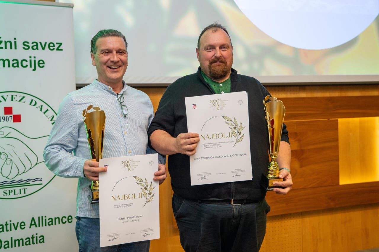 U kategoriji proizvoda od masline priznanje za najbolji prehrambeni proizvod s maslinovim uljem osvojili su YAYA TVORNICA ČOKOLADE i OPG PENSA za čokoladne praline s maslinovim uljem, kao i zlatnu diplomu za liker od mastrinke, dok je RIBA DRAŽIN iz Kaštel Kambelovca osvojila zlatnu i srebrnu diplomu za mariniranu trilju u maslinovom ulju.