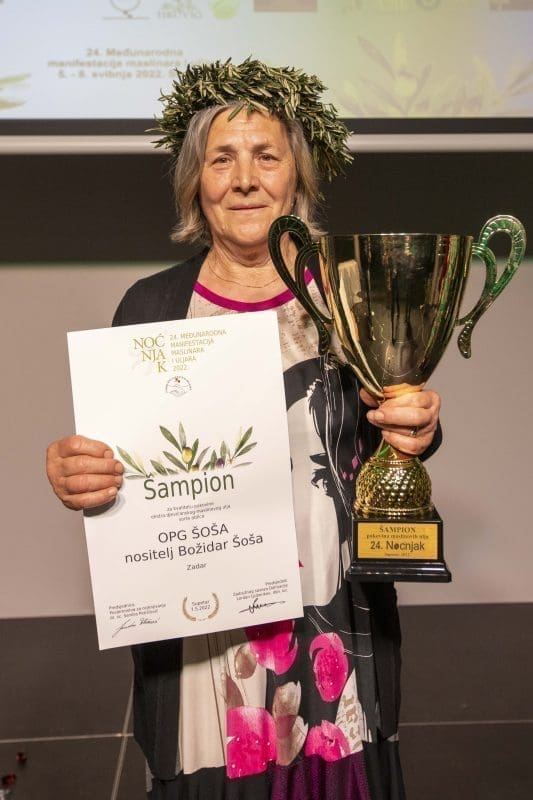 Šampion za kvalitetu pakovine ekstra djevičanskog maslinovog ulja sorte oblica je OPG Šoša, čiji je nositelj Božidar Šoša iz Zadra i to za ekstra djevičansko maslinovo ulje sorte oblica.