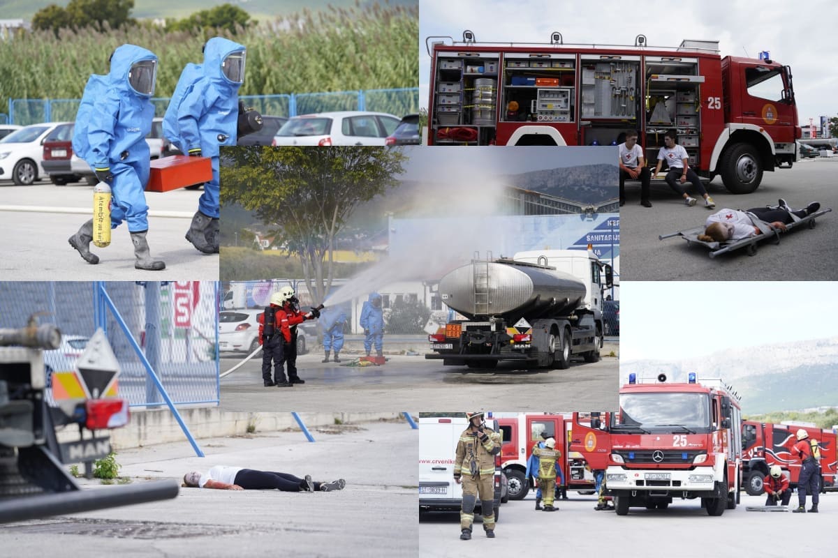 Na parkingu Brodomerkurovog trgovačkog centra u Dujmovači održana je u utorak terenska vježba operativnih snaga sustava Civilne zaštite pod nazivom „Brda 2021“.