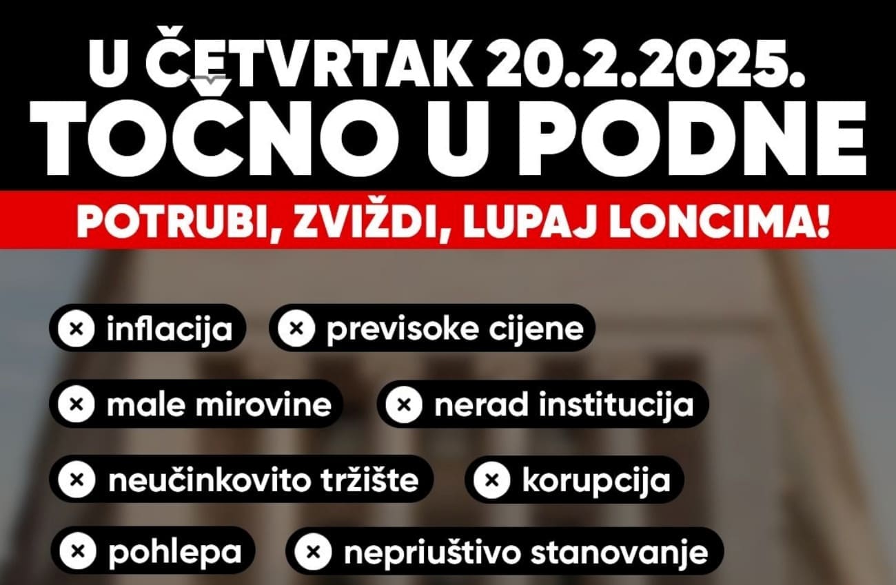 Organizatori bojkota trgovina pozivaju ljude da sutra u podne lupaju loncima, trube i zvižde protiv inflacije, malih penzija i slično. Stoji tako u jutrošnjoj objavi na stranici Halo, inspektore na Facebooku