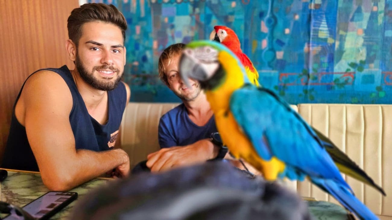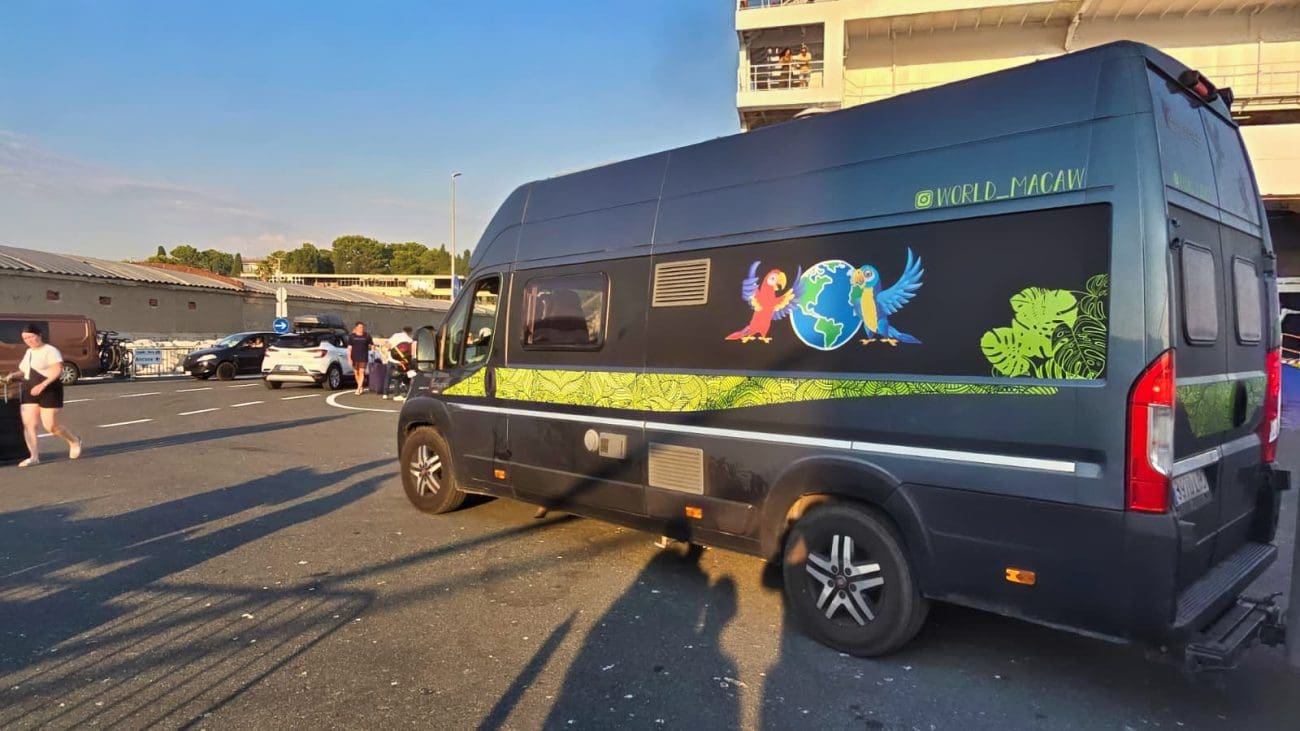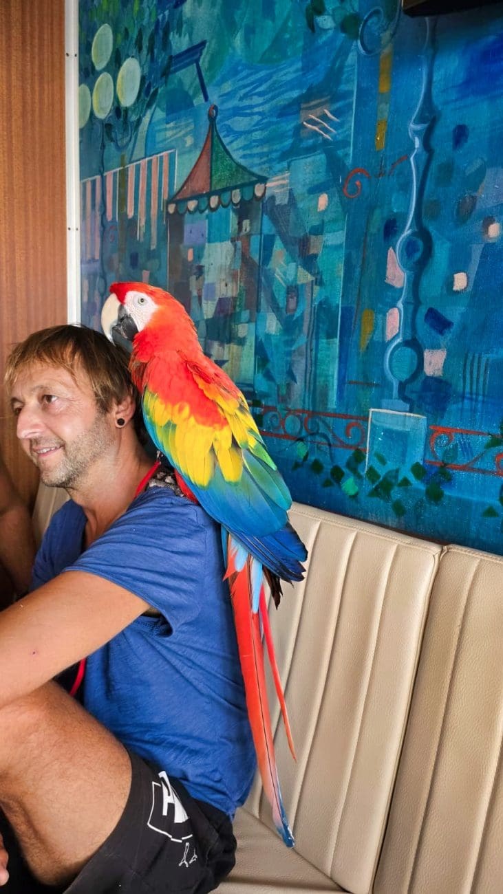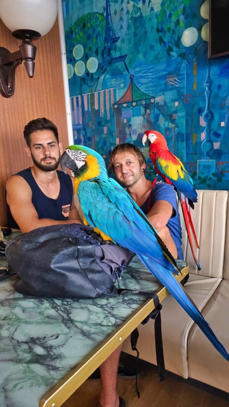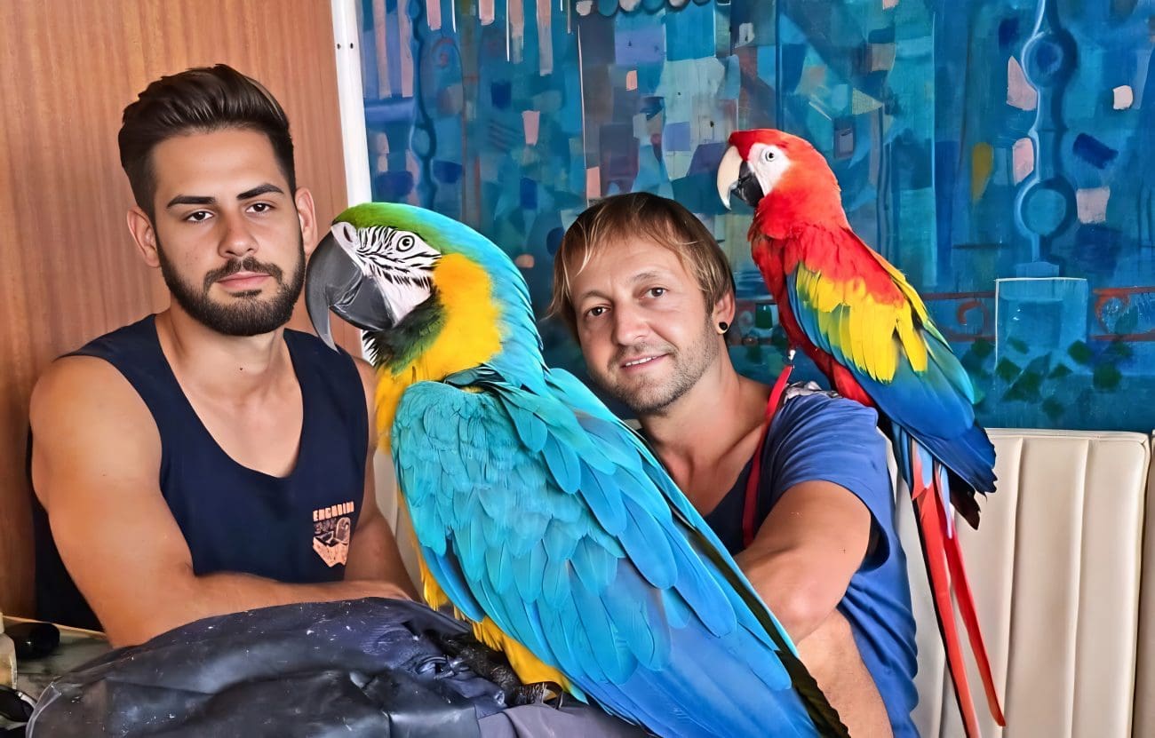U splitskoj trajektnoj luci susreli smo dva Španjolca koji su izazvali veliku pozornost putnika zbog svojih papiga. Igor i Vito na putovanje su poveli mužjaka Orija, sedmogodišnju aru macao, te Africu, šestogodišnju aru araraunu. Riječ je o papigama koje su u paru, a poznato je da ove vrste mogu živjeti i do 80 godina. Zabilježen je i slučaj are macao koja je doživjela čak 104 godine.