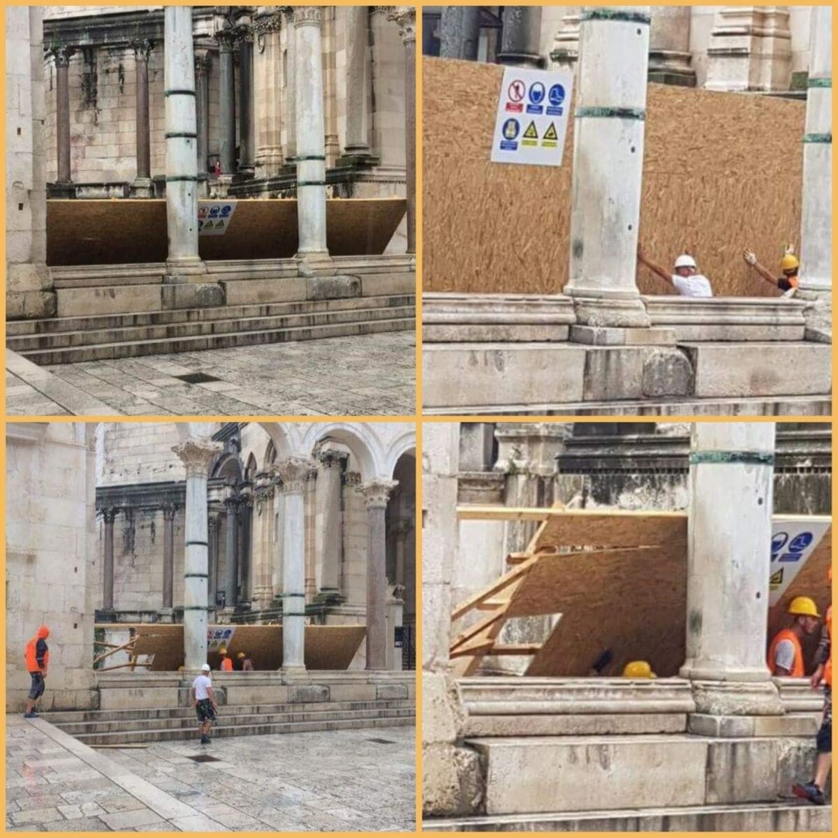 Bura je na Peristili srušila dio drvene konstrukcije uz katedralu sv. Duje.