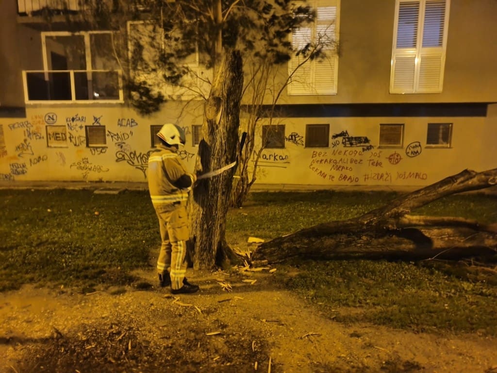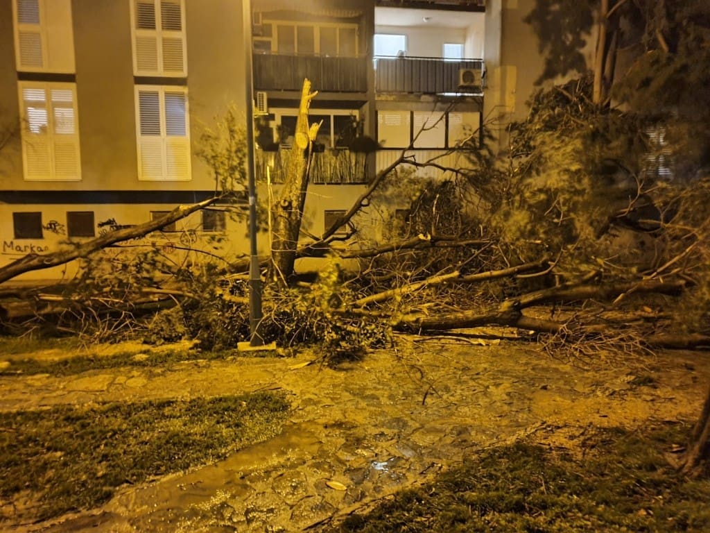 Orkanski udari vjetra srušili su dva stabla u Šimićevoj ulici u Splitu. Intervenirali su splitski vatrogasci koji su otklonili opasnost.