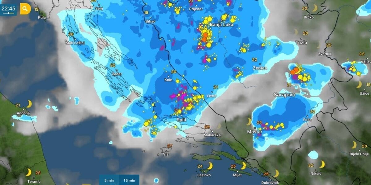Hladna fronta tijekom dana premještala se preko unutrašnjosti zemlje i preko sjevernog Jadrana, a navečer je stigla do sjeverne, zatim i srednje Dalmacije.