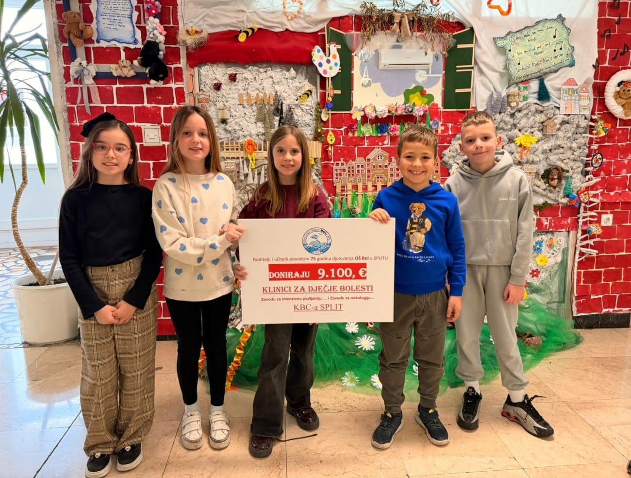 Učenici i njihove obitelji, nastavnici te cijeli kolektiv Osnovne škole Bol odlučili su proslavu 75. rođendana škole obilježiti velikom humanitarnom akcijom za malene pacijente KBC-a Split. Nizom aktivnosti organiziranih povodom ove vrijedne obljetnice prikupili su 9.100 eura.