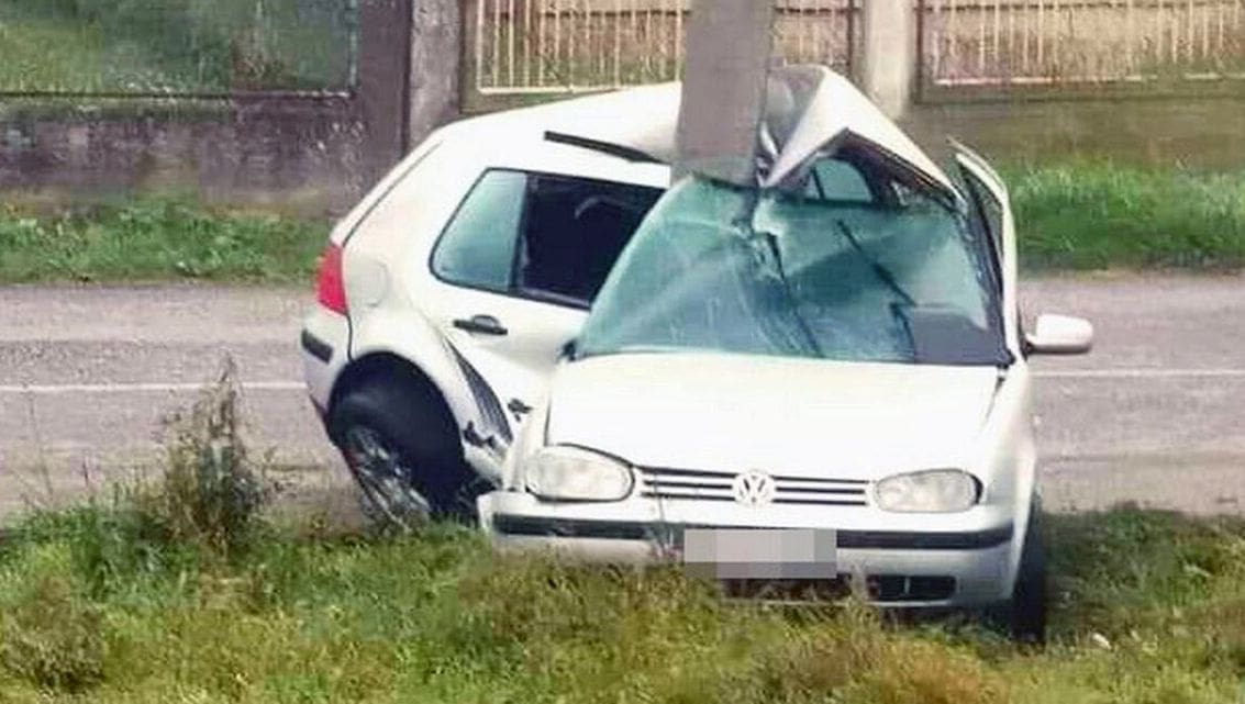 Izletio je s ceste, vozilom udario u rubni kamen i potom desnim bočnim dijelom u betonski stup. Golf je pritom omotan oko stupa poput papira!
