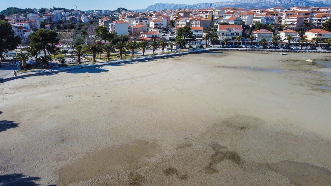 Donosimo nesvakidašnje prizore iz Stobreča koje smo snimili oko sat vremena nakon dosegnutog minimuma, kada je razina mora već bila u porastu.