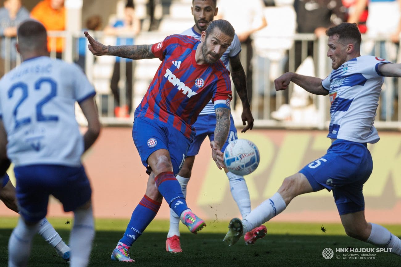 Nogometaši Osijeka porazili su Hajduk rezultatom 2:0 u utakmici 32. kola SuperSport HNL-a. Osijek je slavio autogolom Ivana Lučića i golom Arnela Jakupovića, a prijeloman trenutak utakmice dogodio se u 30. minuti kada je Roko Brajković dobio drugi žuti karton pa je Hajduk tako dulje od sat vremena igrao s igračem manje.