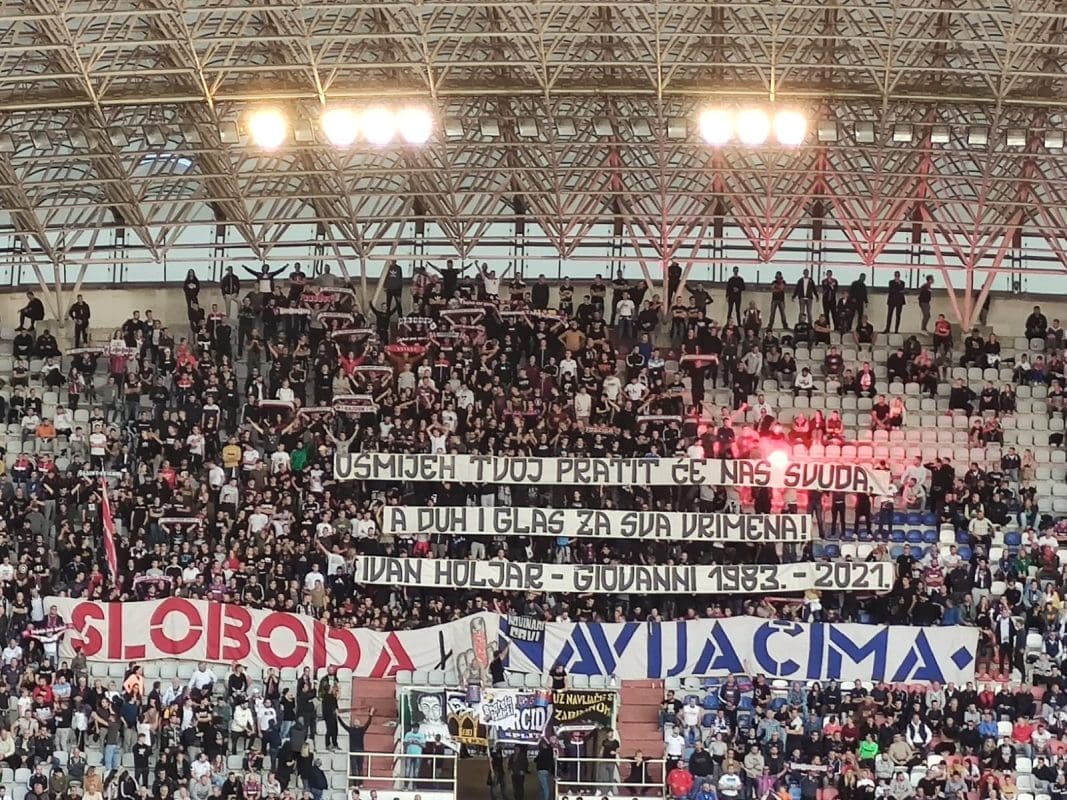 No, to ih nije spriječilo da i danas rašire transparent. Prisjetili su se tako prerano preminulog Ivana Holjara Giovannija.