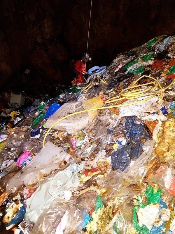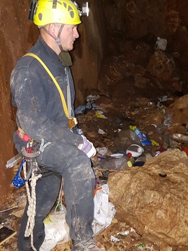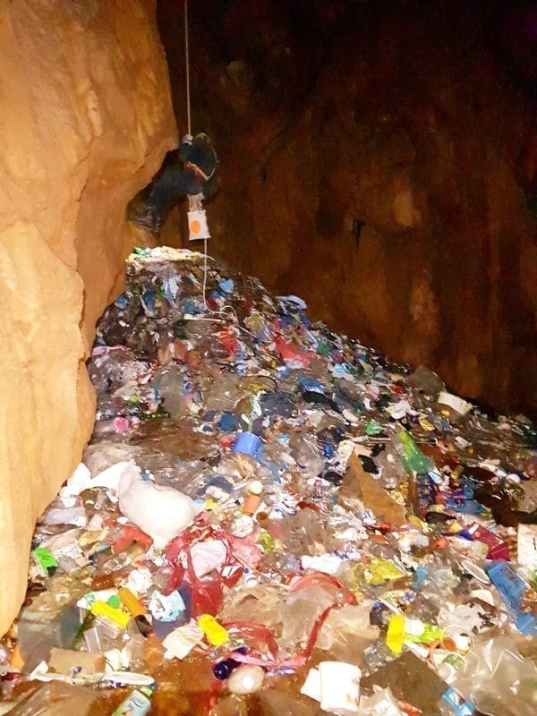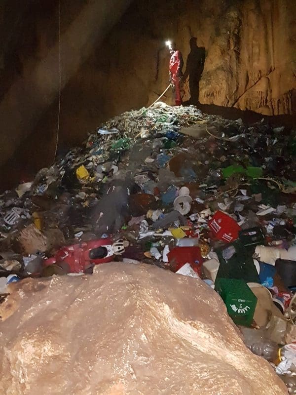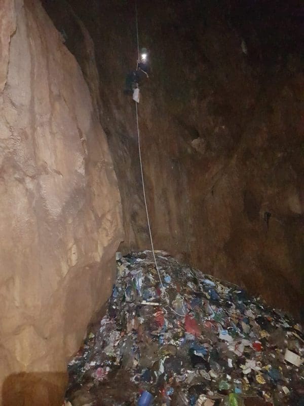 U današnjoj akciji u Gaćinoj jami kod Zagvozda speleolozi Tonći Rađa i Vedran Vrtlar iz Speleološkog društva Špiljar ustanovili su da je ovaj prirodni biser Zagore doslovno zatrpan otpadom.